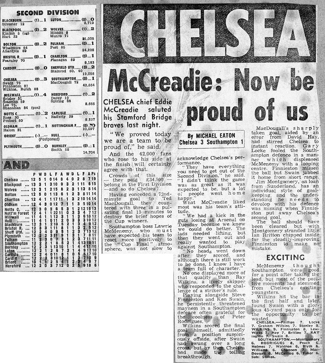 | 04/09/1976 | Millwall | Cutting | 12/01/1977 | Southampton | Cutting |