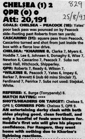 | 25/08/1993 | QPR | Report | 09/02/1994 | Sheffield W | Report |