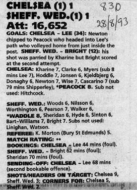 | 17/08/1993 | Wimbledon | Report | 29/01/1994 | Sheffield W | Report |