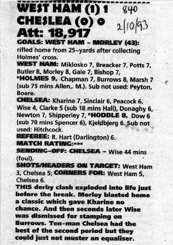 | 02/10/1993 | West Ham | Cutting | 13/03/1994 | Wolves | Report |