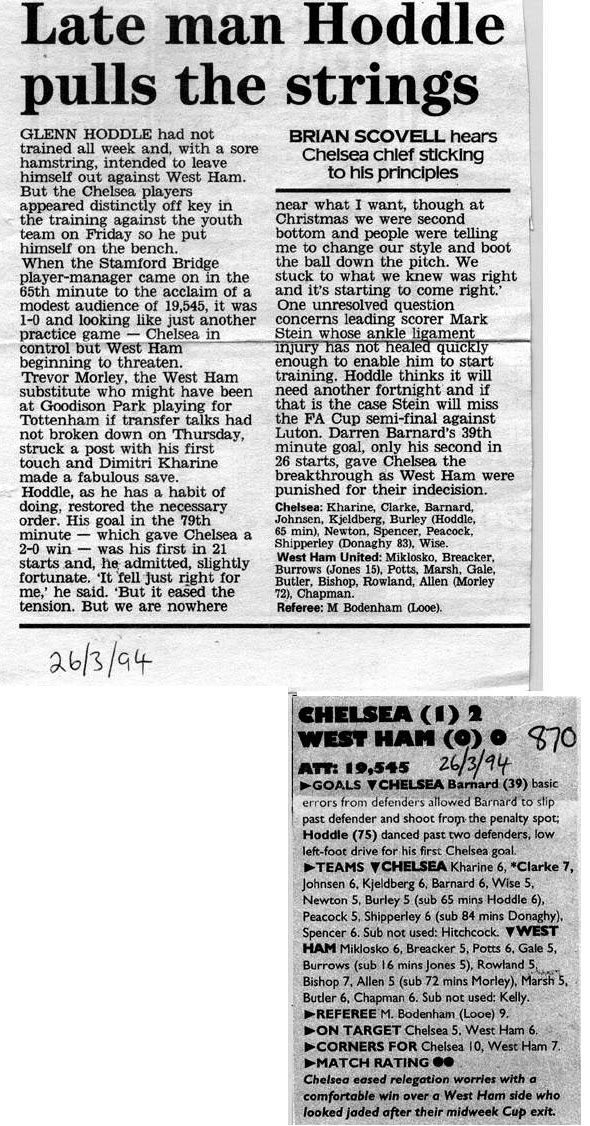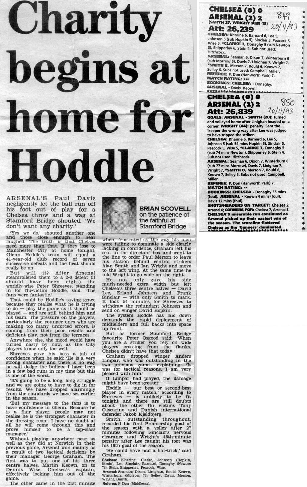 | 20/11/1993 | Arsenal | Report | 26/03/1994 | West Ham | Cutting |