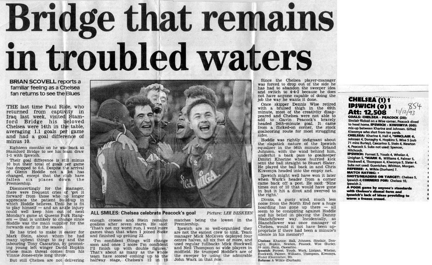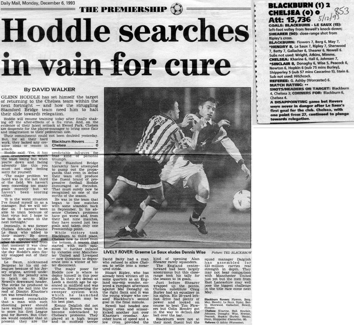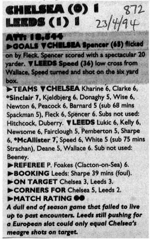 | 06/11/1993 | Leeds | Cutting | 26/03/1994 | West Ham | Report |