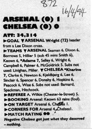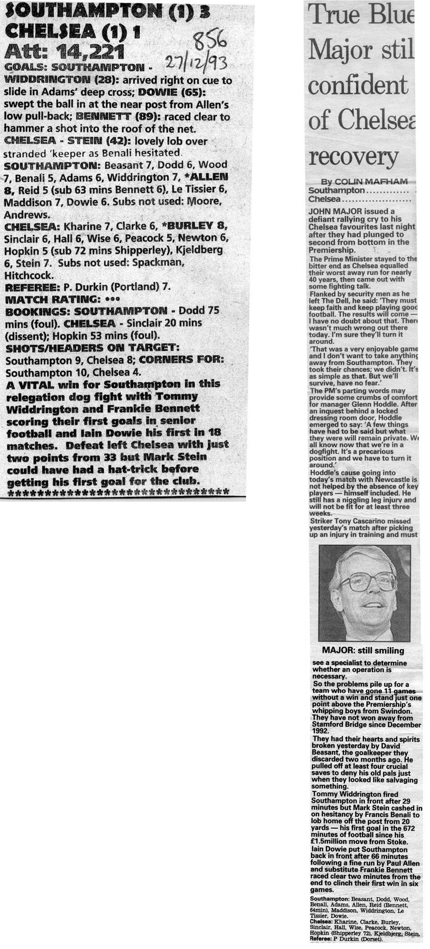 | 27/12/1993 | Southampton | Cutting | 16/04/1994 | Arsenal | Report |