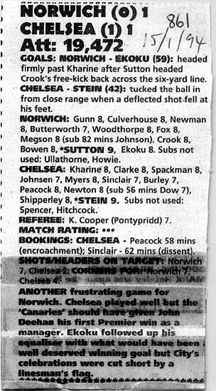 | 15/01/1994 | Norwich | Report | 07/05/1994 | Sheffield U | Report |