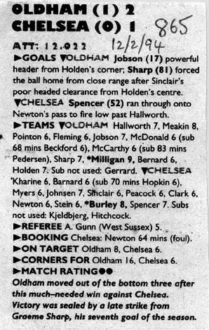 | 30/10/1993 | Oldham | Cutting | 19/03/1994 | Liverpool | Report |