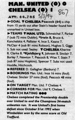 | 02/10/1993 | West Ham | Report | 05/03/1994 | Manchester U | Cutting |