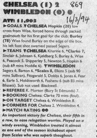 | 16/10/1993 | Norwich | Report | 16/03/1994 | Wimbledon | Report |