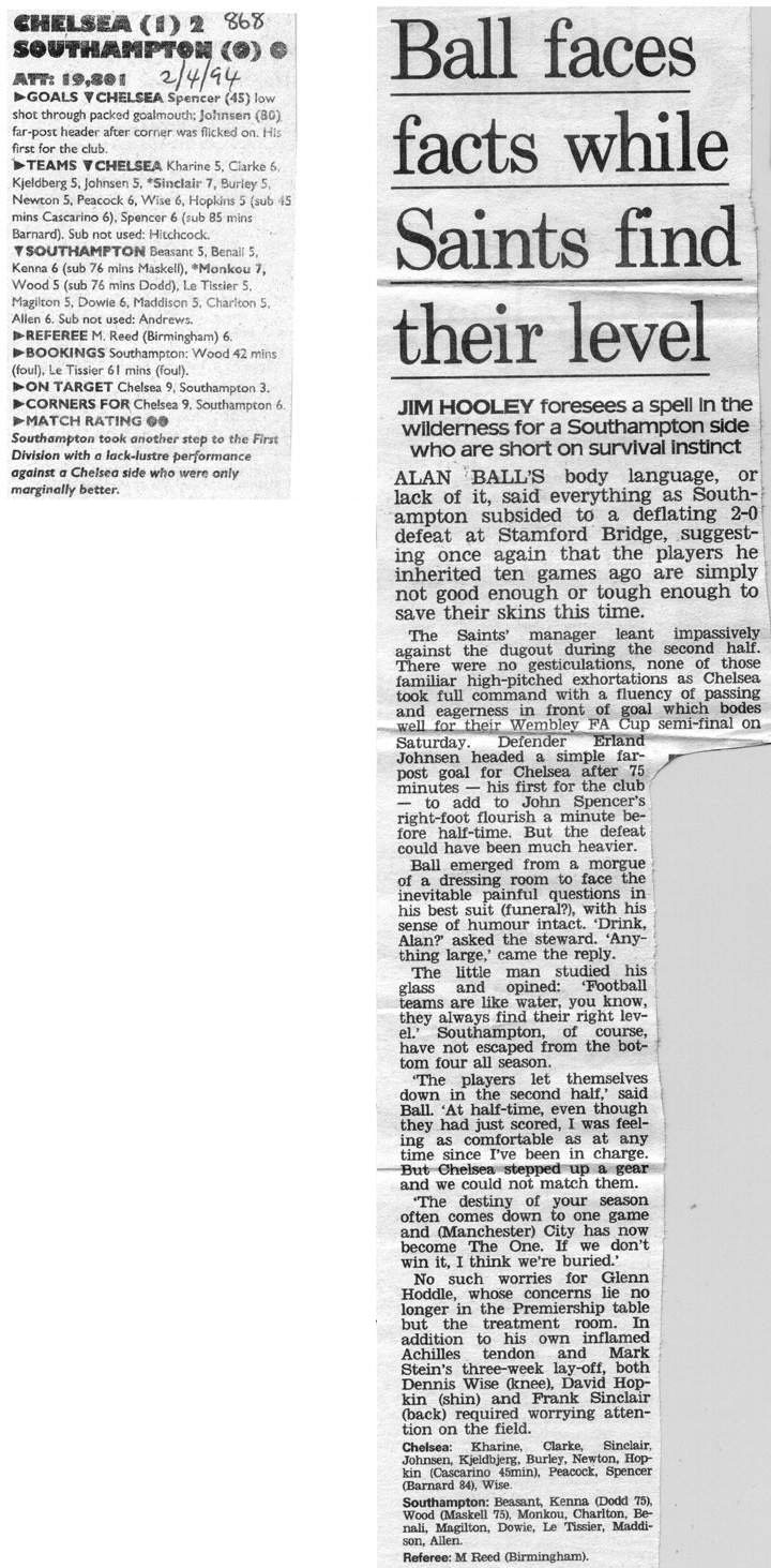 | 27/11/1993 | Sheffield U | Report | 02/04/1994 | Southampton | Cutting |