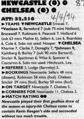 | 28/12/1993 | Newcastle | Report | 16/04/1994 | Arsenal | Cutting |