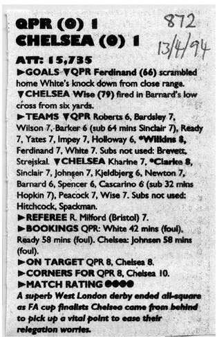 | 25/08/1993 | QPR | Cutting | 12/02/1994 | Oldham | Report |