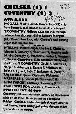 | 03/01/1994 | Everton | Cutting | 04/05/1994 | Coventry | Report |