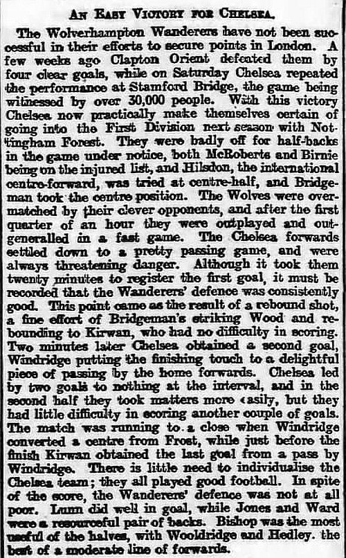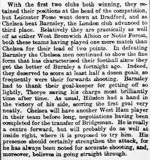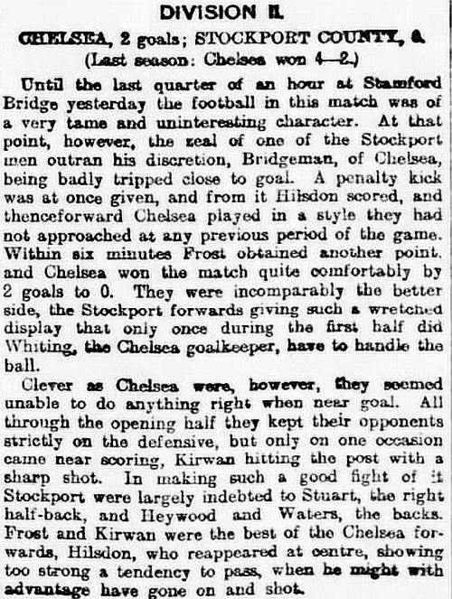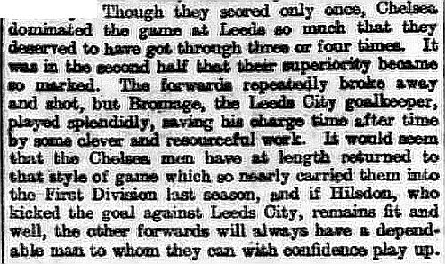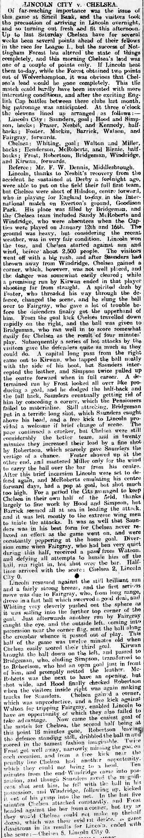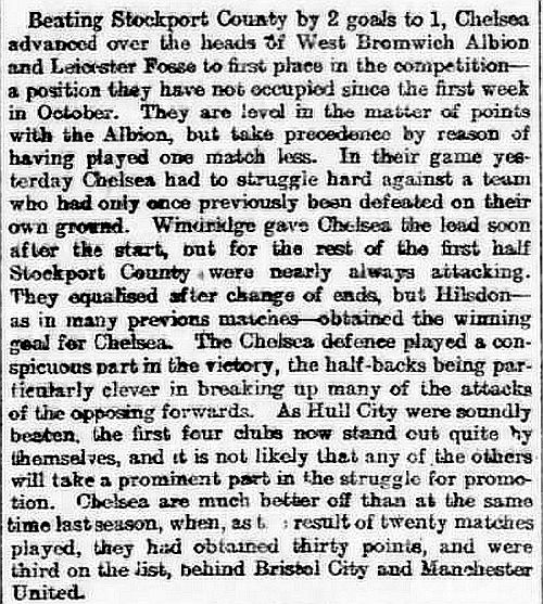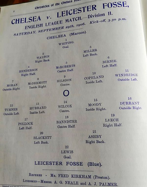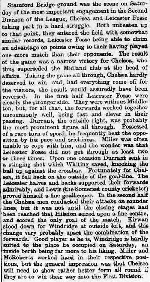 Chelsea (0) 1 Leicester Fosse (0) 0