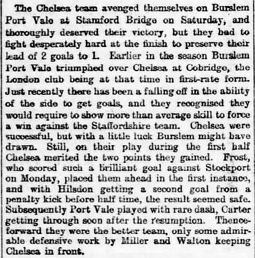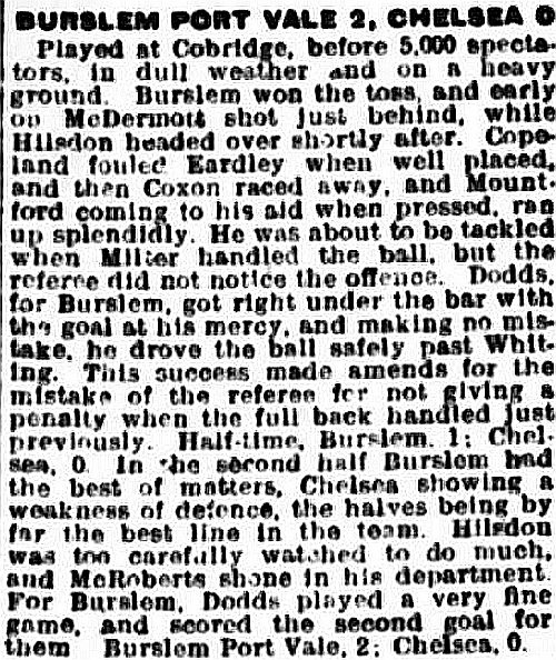 Chelsea (2) 2 Burslem Port Vale (0) 1
