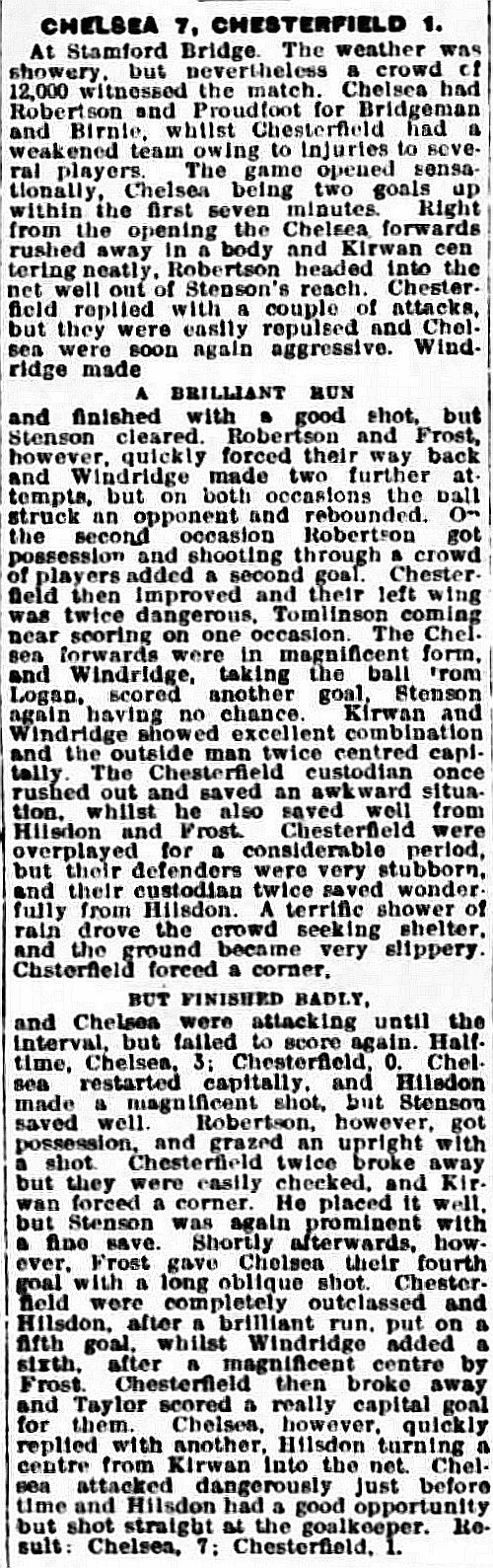 Chelsea (3) 7 Chesterfield Town (0) 1