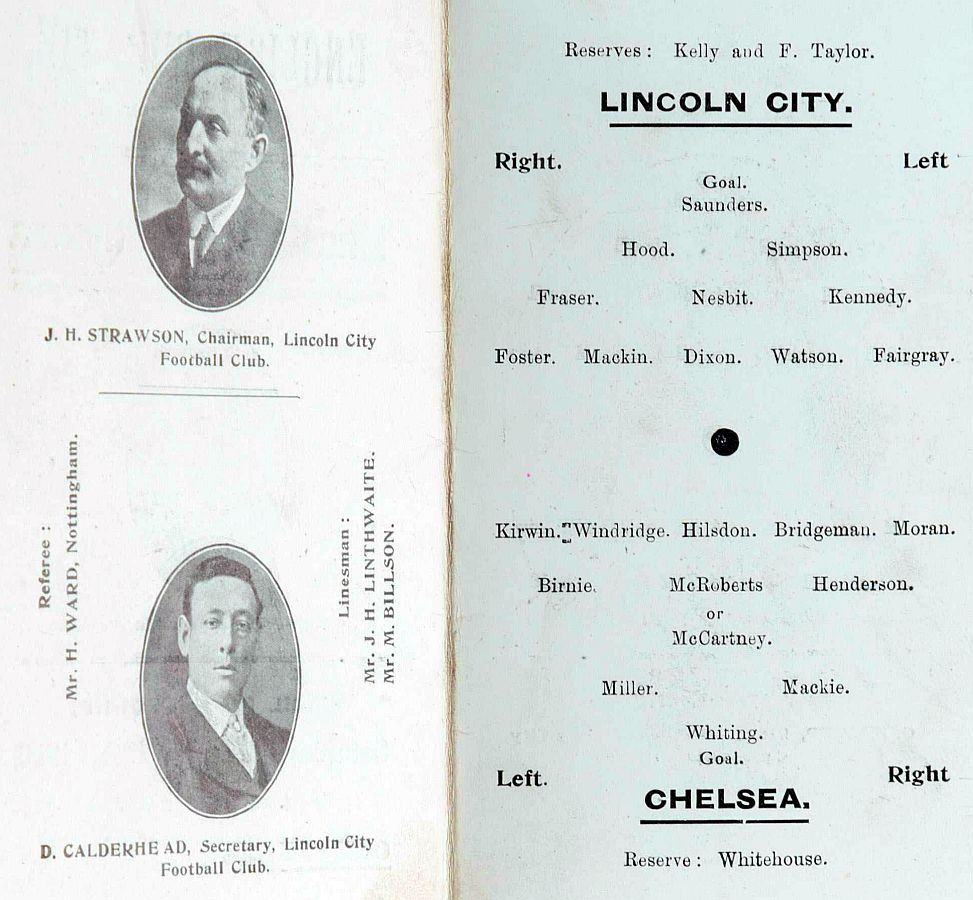 1 Bob Whiting, 2 Joseph Walton, 3 Thomas Miller, 4 George Henderson, 5 Bob McRoberts, 6 Ted Birnie, 7 Martin Moran, 8 Tommy McDermott, 9 George Hilsdon, 10 James Windridge, 11 Jack Kirwan |