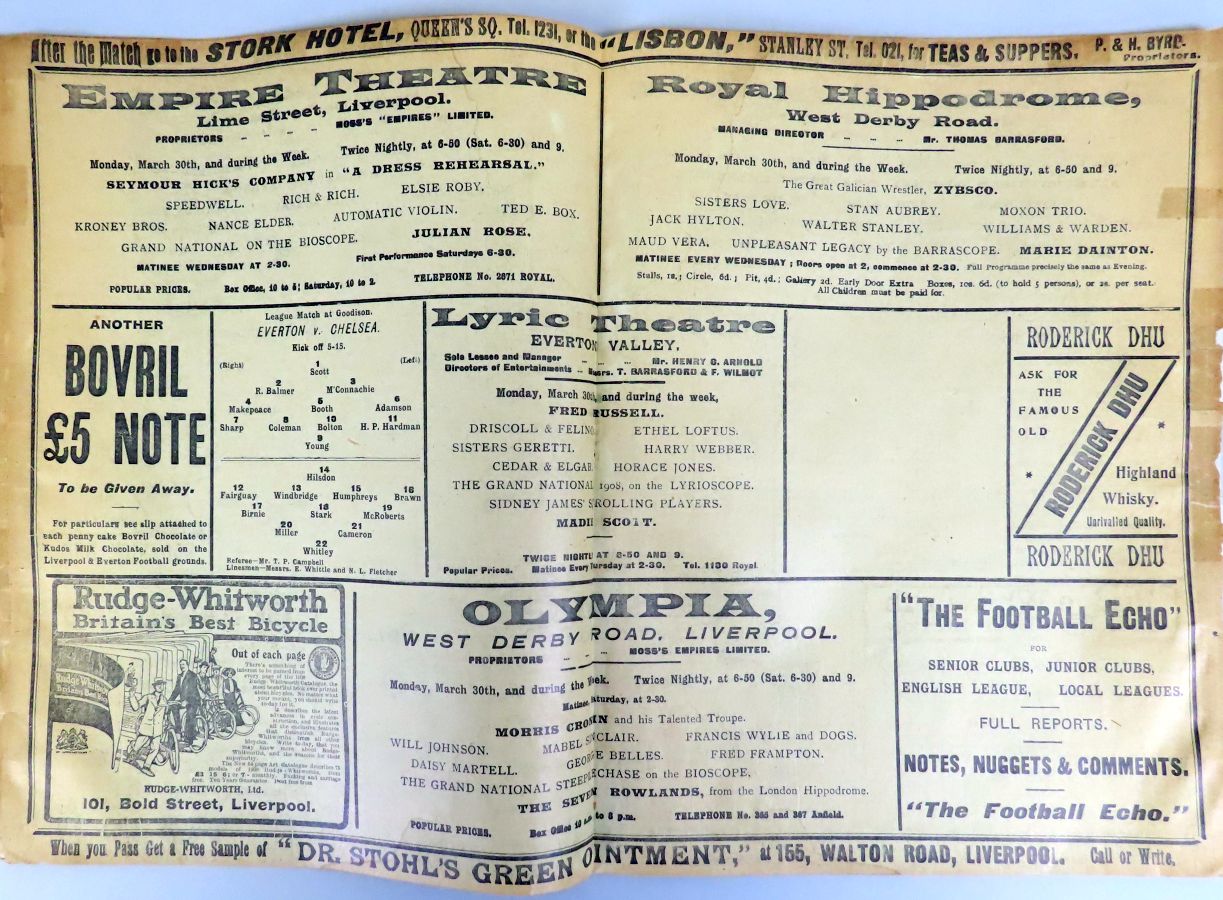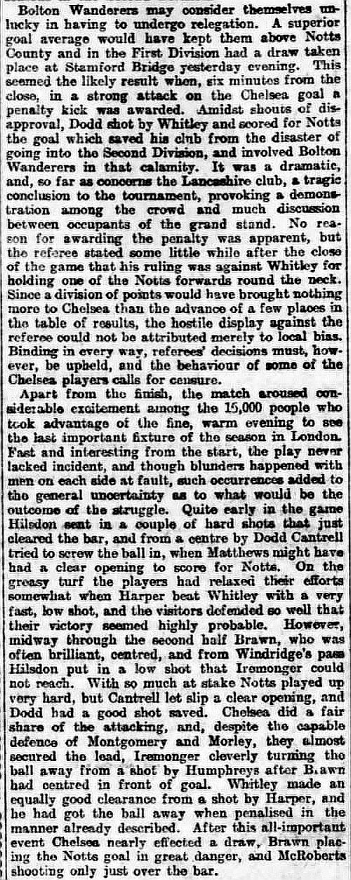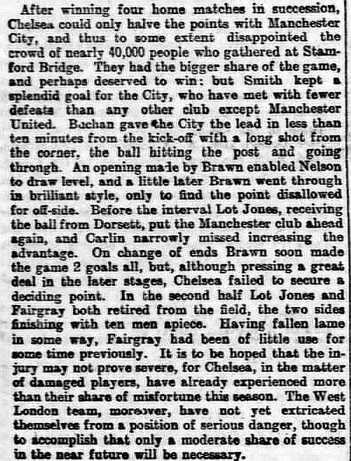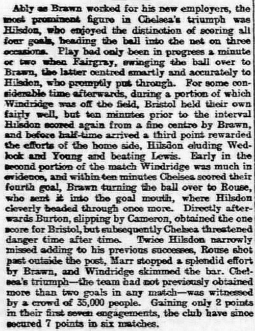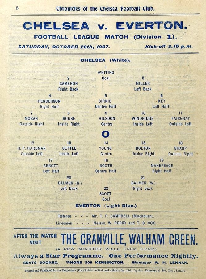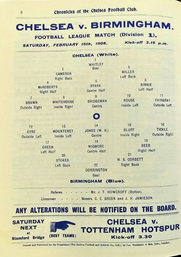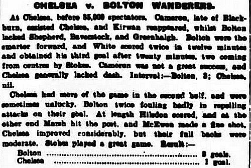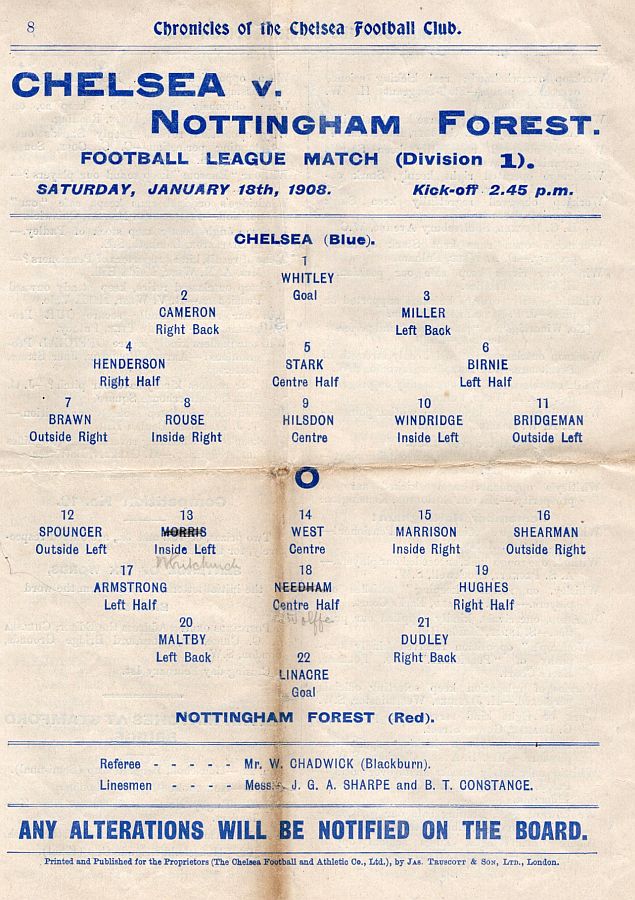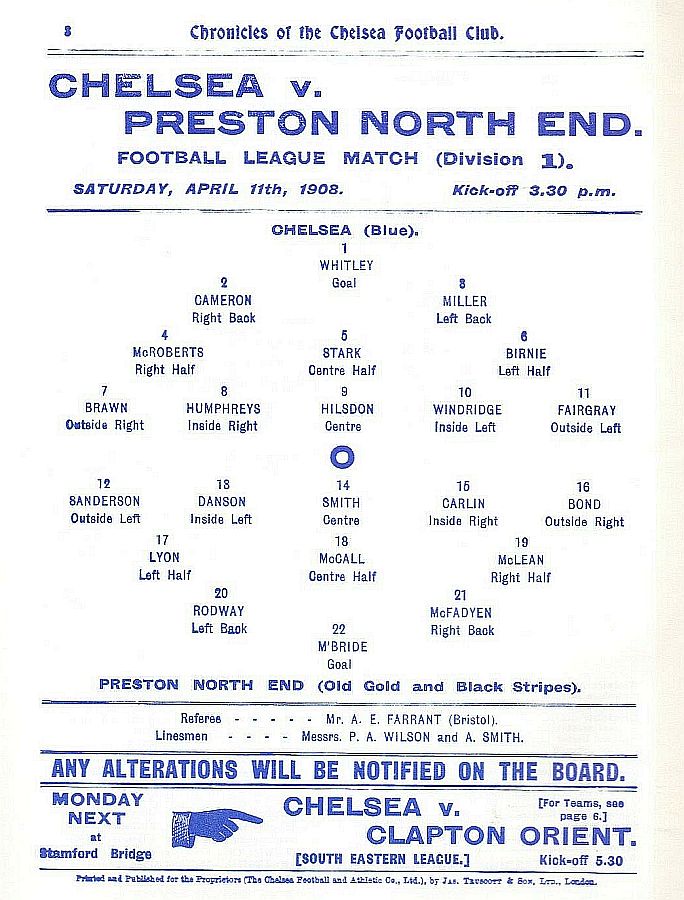 1 Jack Whitley, 2 Jock Cameron, 3 Thomas Miller, 4 Bob McRoberts, 5 James Stark, 6 Ted Birnie, 7 Billy Brawn, 8 Fred Rouse, 9 George Hilsdon, 10 James Windridge, 11 William Bridgeman |
