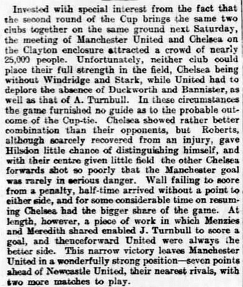 Billy Meredith 7, Sandy Turnbull 28, Jimmy Bannister 48, Billy Meredith 89 |