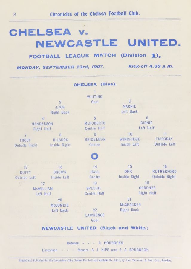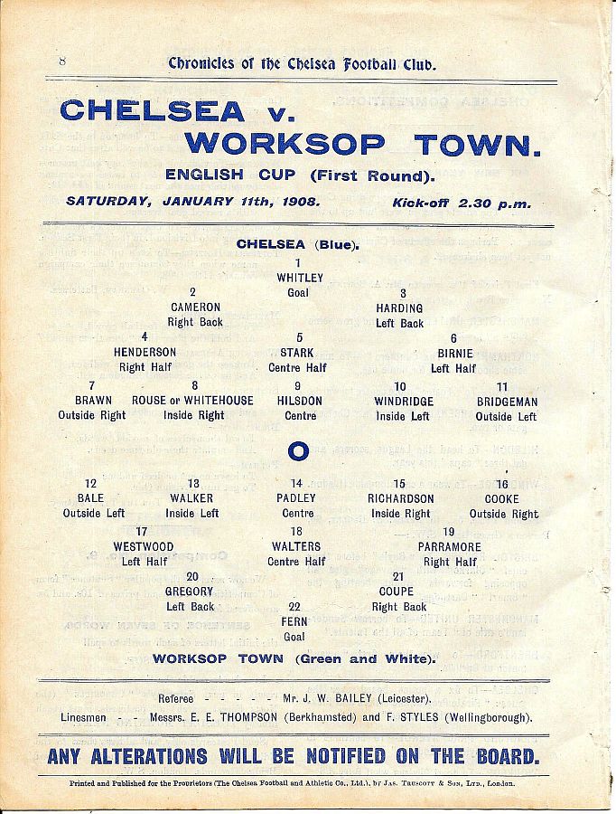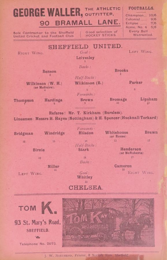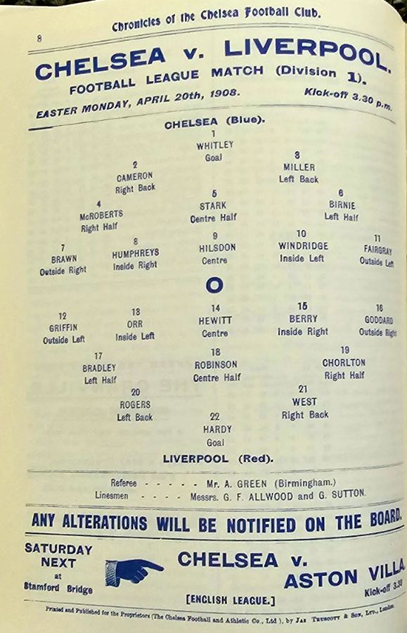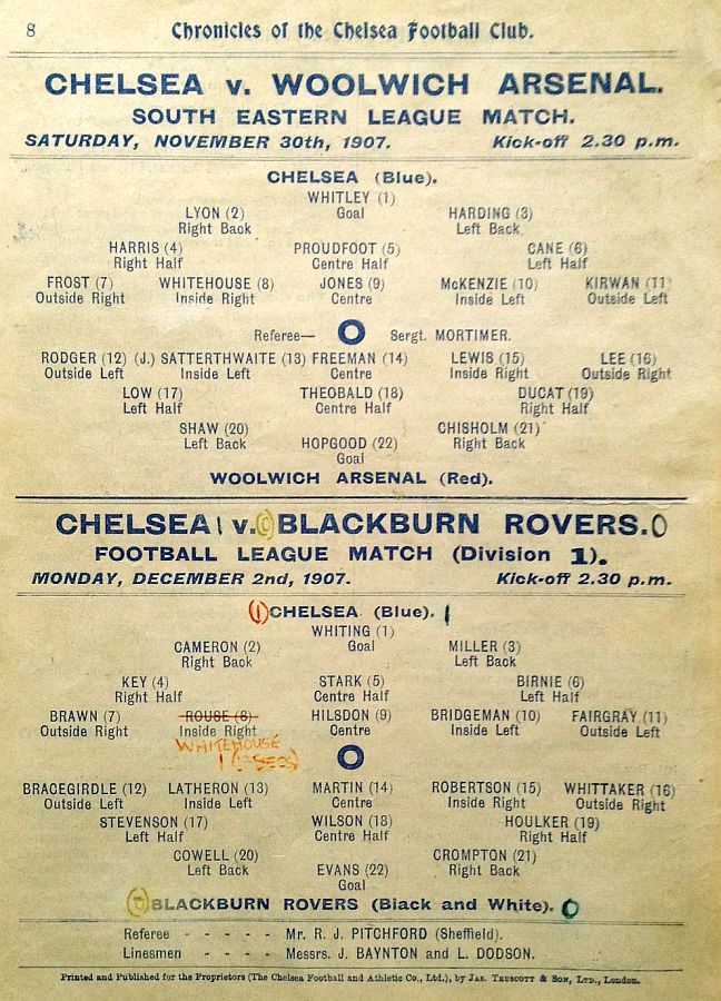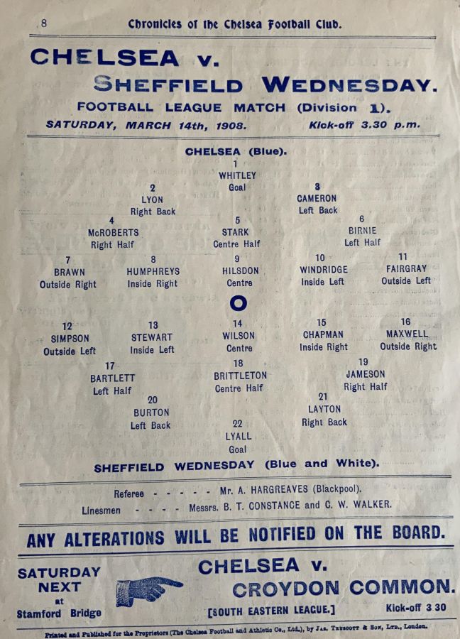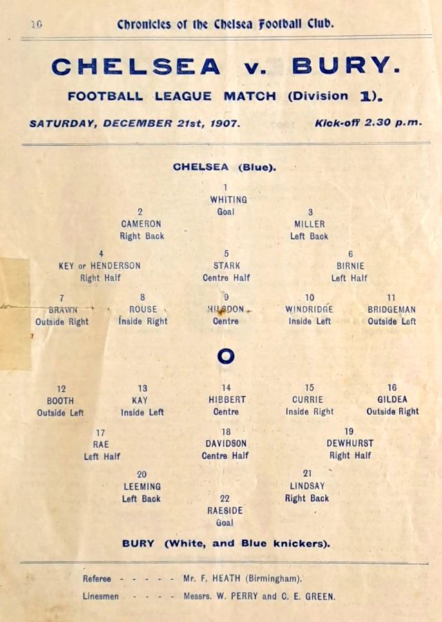1 Bob Whiting, 2 Frank Lyon, 3 Robert Mackie, 4 George Henderson, 5 Bob McRoberts, 6 Ted Birnie, 7 Jimmy Frost, 8 William Bridgeman, 9 George Hilsdon, 10 James Windridge, 11 Norman Fairgray |