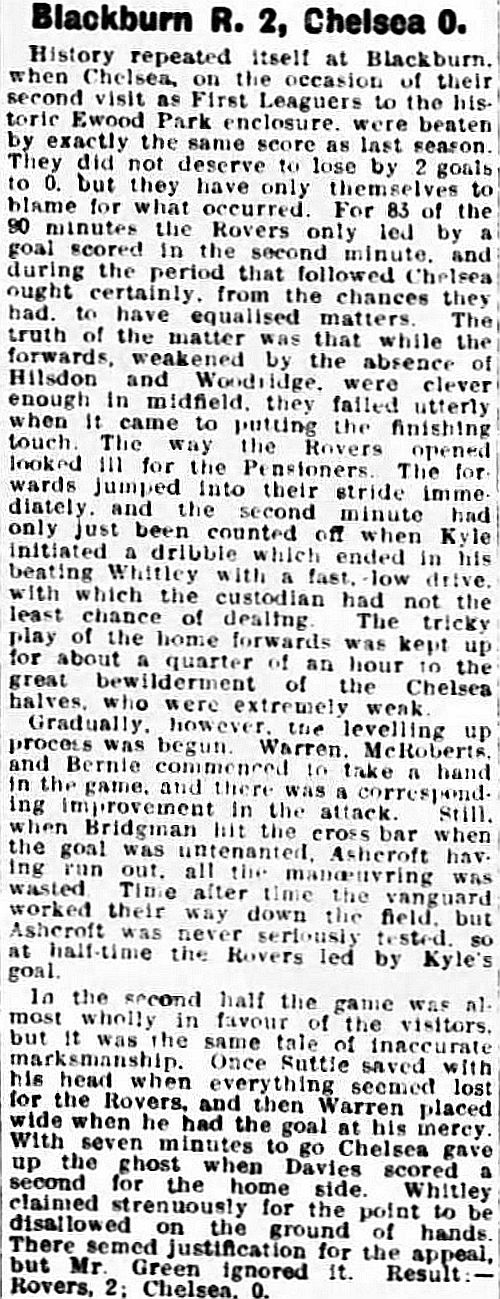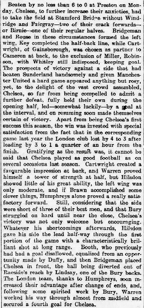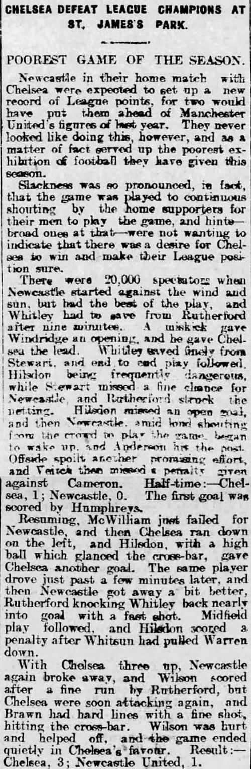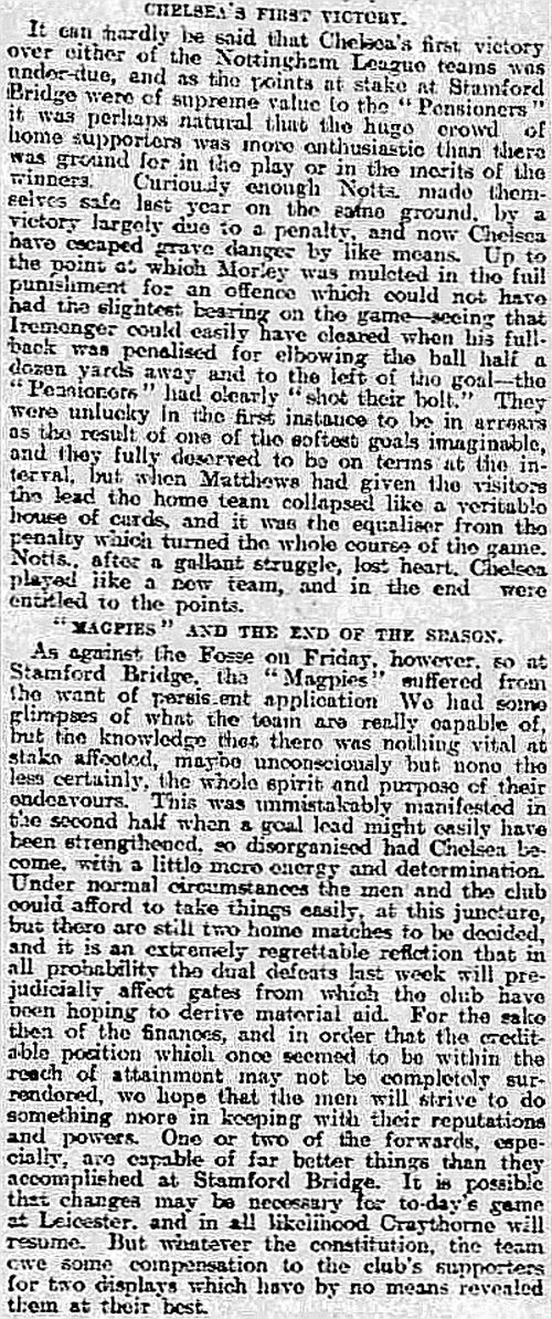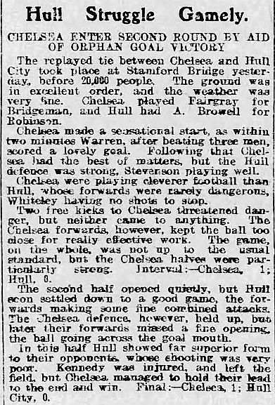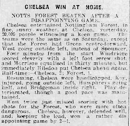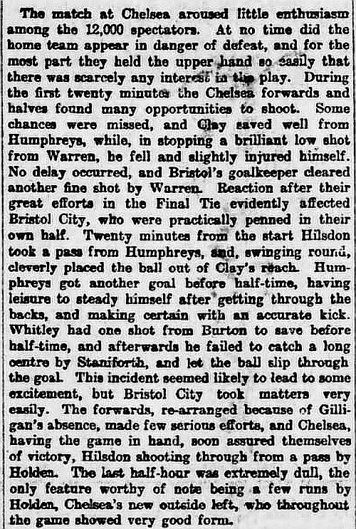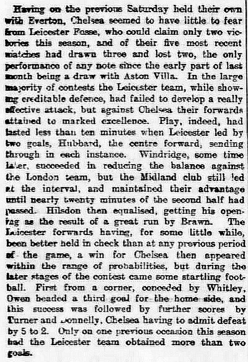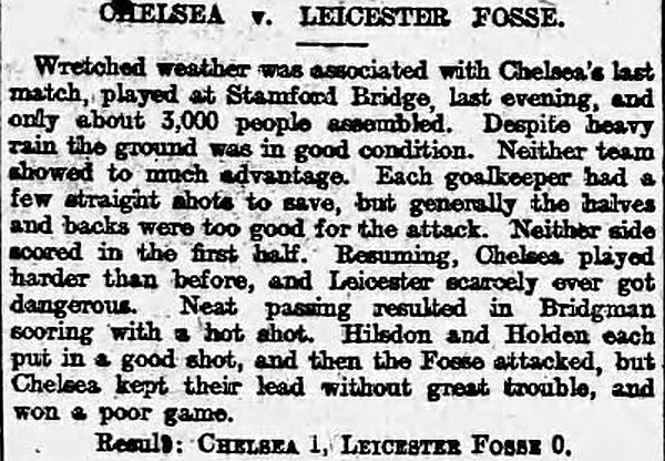 Chelsea (0) 1 Leicester Fosse (0) 0
