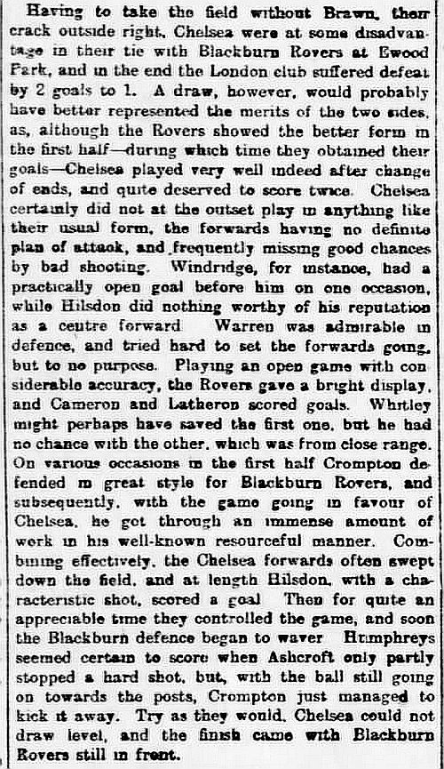 Chelsea (0) 1 Blackburn Rovers (0) 1