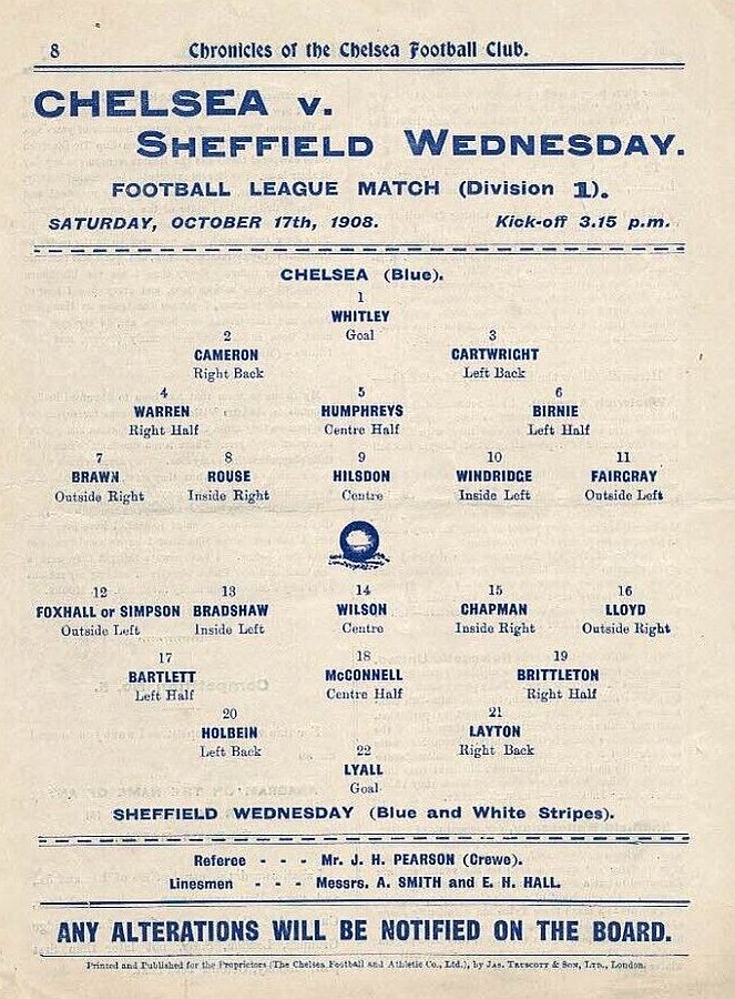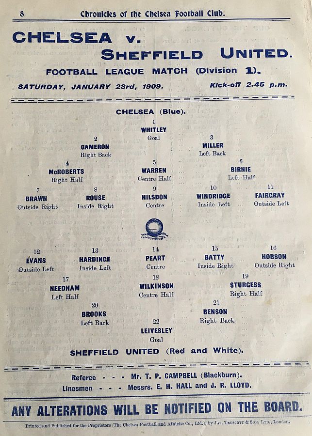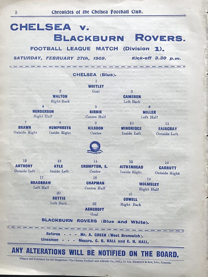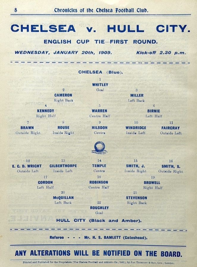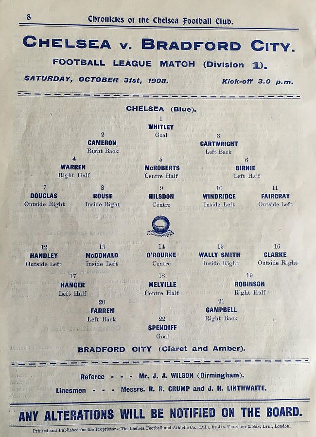 1 Jack Whitley, 2 Jock Cameron, 3 Joseph Walton, 4 Ben Warren, 5 Ted Birnie, 6 Sam Downing, 7 Billy Brawn, 8 Percy Humphreys, 9 George Hilsdon, 10 James Windridge, 11 Charlie Freeman |