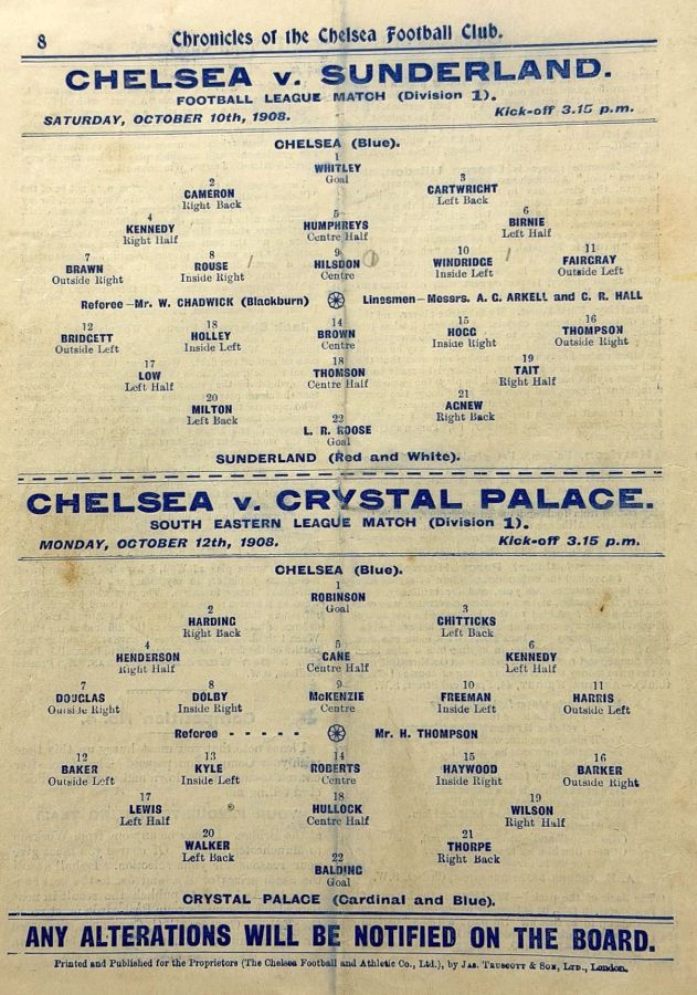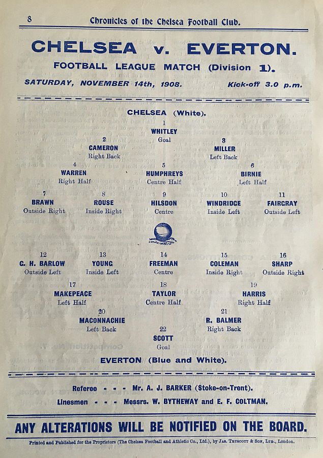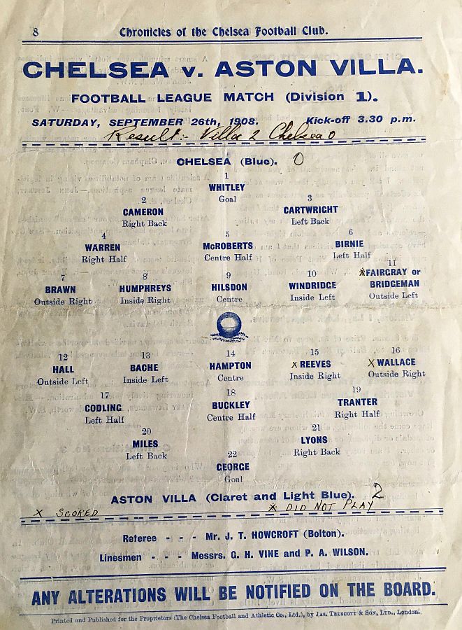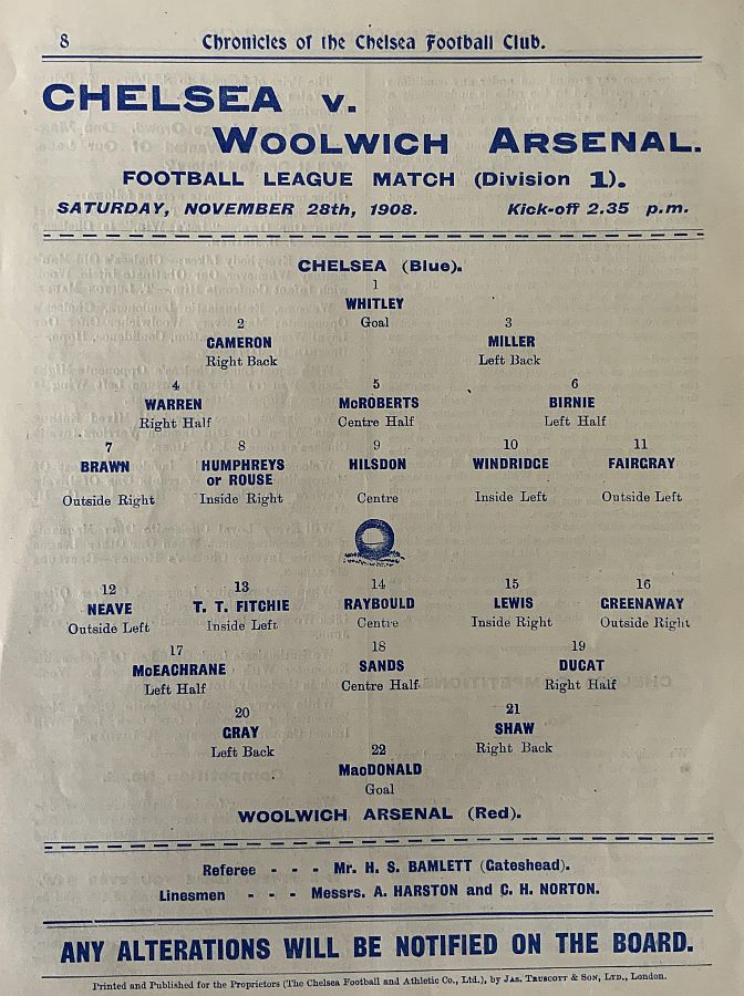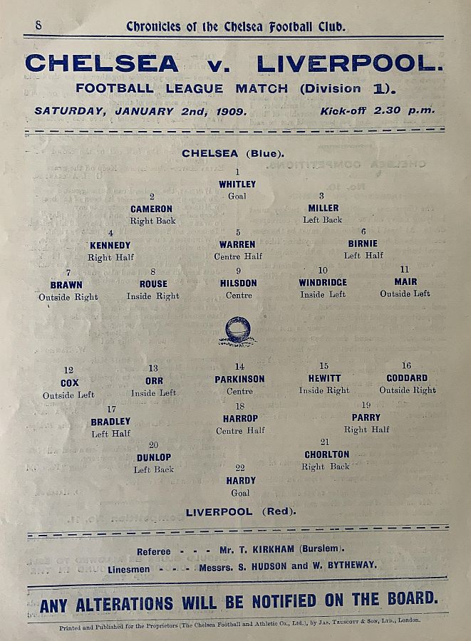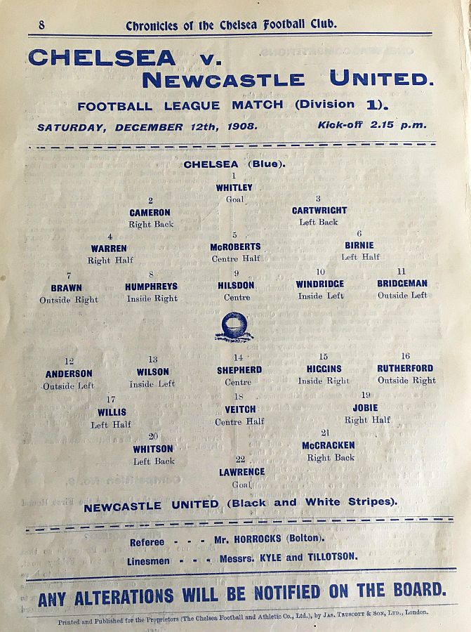 1 Jack Whitley, 2 Jock Cameron, 3 Joseph Walton, 4 Ben Warren, 5 Ted Birnie, 6 Sam Downing, 7 Billy Brawn, 8 Percy Humphreys, 9 George Hilsdon, 10 James Windridge, 11 Charlie Freeman |