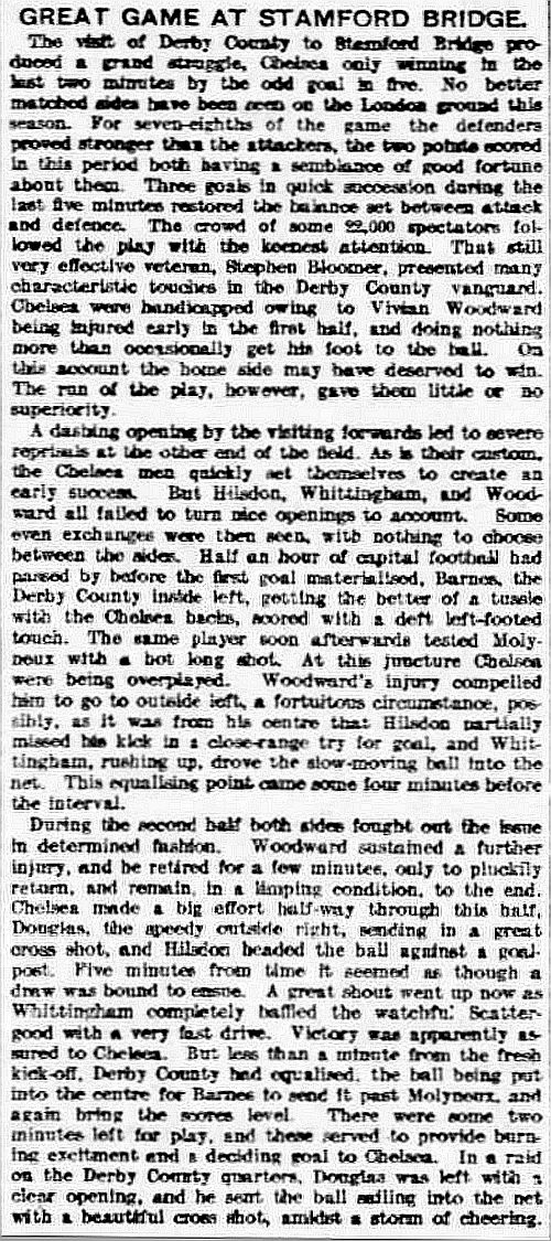 1 James Molyneux, 2 Wally Bettridge, 3 Jock Cameron, 4 Ben Warren, 5 English McConnell, 6 Sam Downing, 7 Angus Douglas, 8 Bob Whittingham, 9 George Hilsdon, 10 Vivian Woodward, 11 Marshall McEwan |