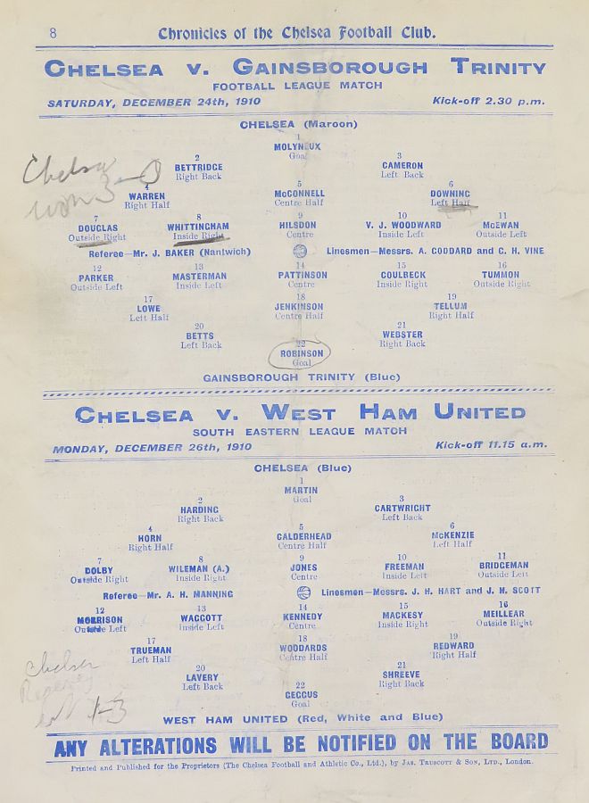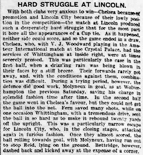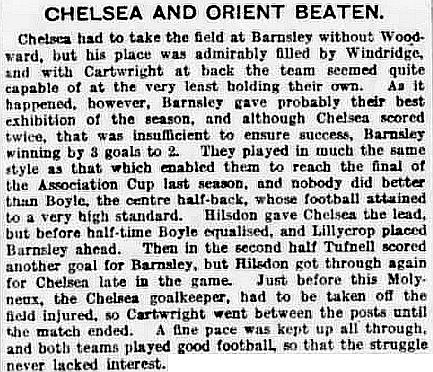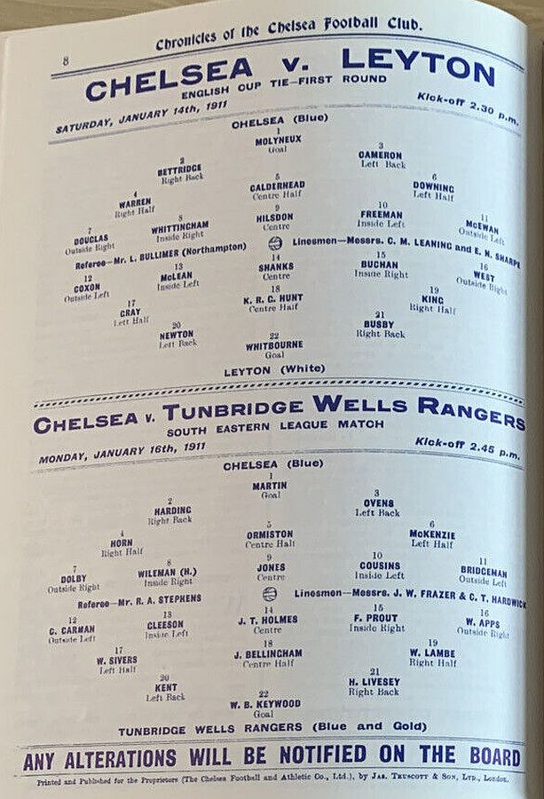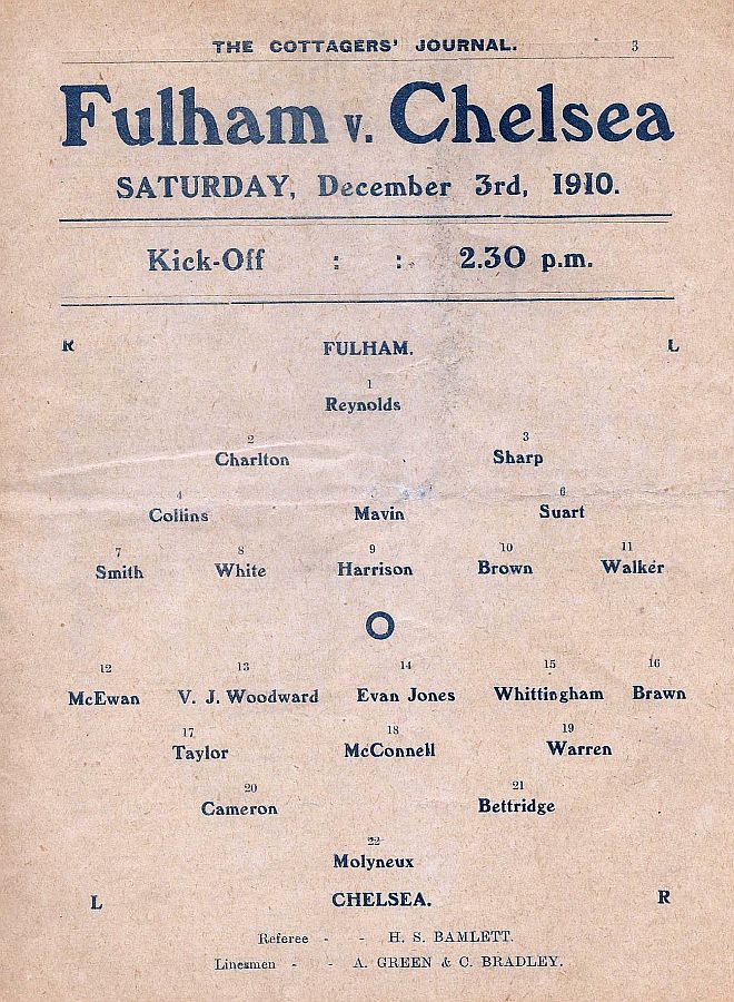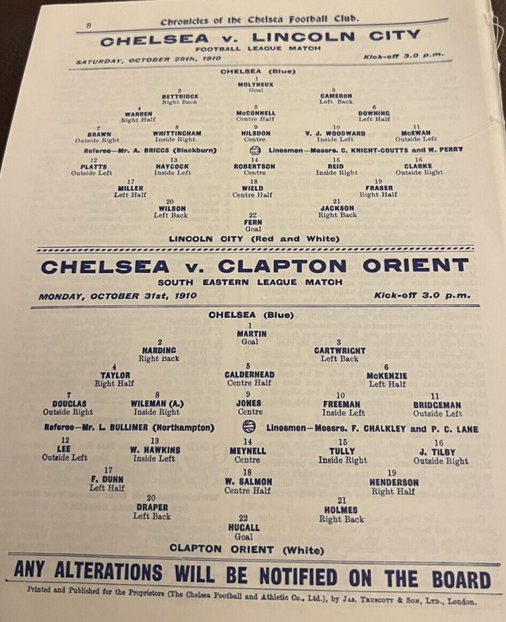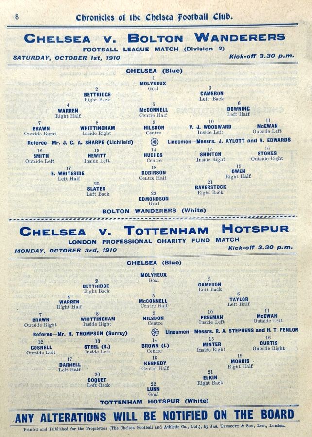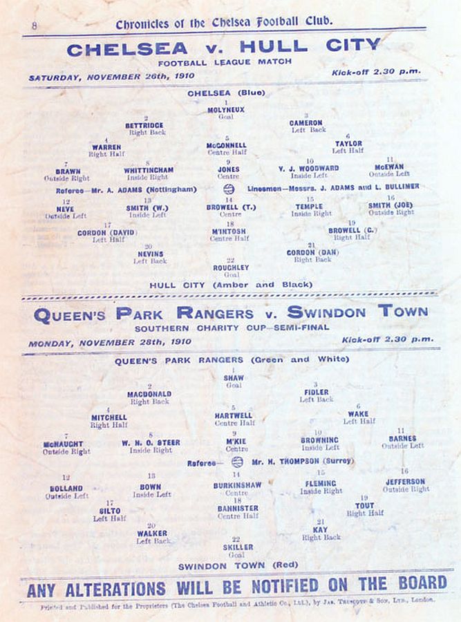 1 James Molyneux, 2 Wally Bettridge, 3 Jock Cameron, 4 Ben Warren, 5 English McConnell, 6 Sam Downing, 7 Billy Brawn, 8 Bob Whittingham, 9 George Hilsdon, 10 Vivian Woodward, 11 Marshall McEwan |