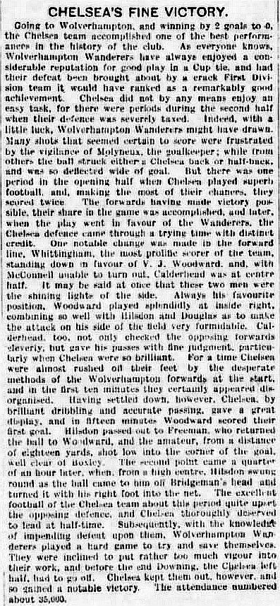 Chelsea (0) 2 Wolverhampton Wanderers (0) 0