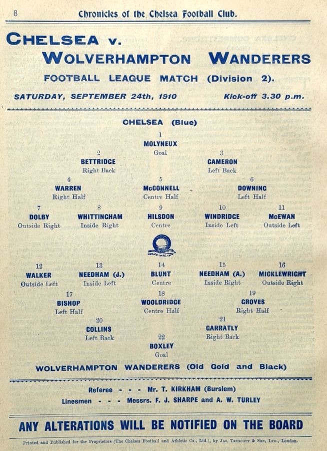 1 James Molyneux, 2 Wally Bettridge, 3 Jock Cameron, 4 Ben Warren, 5 David Calderhead, 6 Sam Downing, 7 Marshall McEwan, 8 Bob Whittingham, 9 George Hilsdon, 10 Charlie Freeman, 11 William Bridgeman |