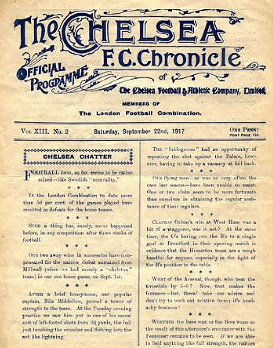 Hufton, Hodson, Cope, Johnstone, Bell, Tresadern, Ashton, Cunningham, Puddefoot, Roberts, Mackesy |
