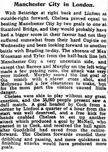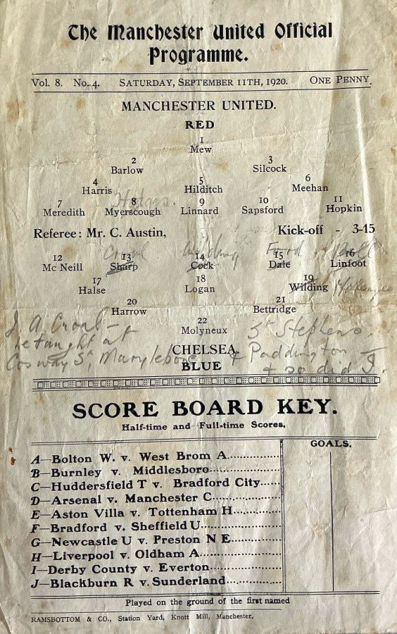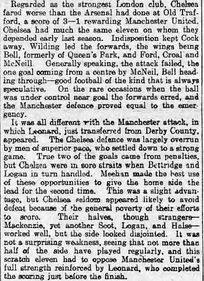 Jack Mew, Cyril Barlow, Jack Silcock, Frank Harris, Clarrie Hilditch, Tommy Meehan, Billy Meredith, Frank Hodges, Harry Leonard, George Sapsford, Fred Hopkin |