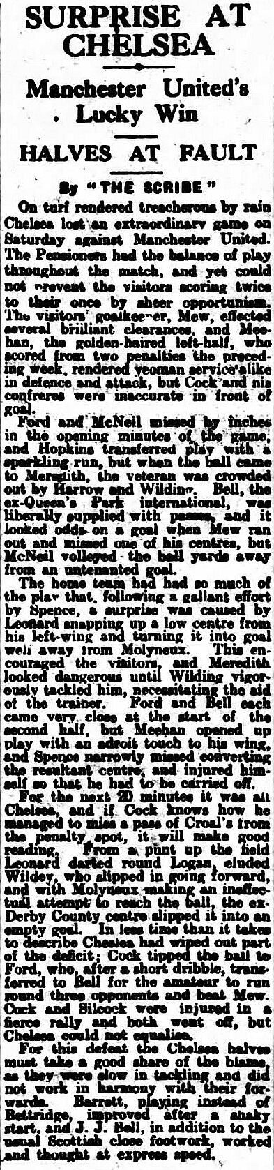 Jack Mew, Cyril Barlow, Jack Silcock, Frank Harris, Clarrie Hilditch, Tommy Meehan, Billy Meredith, Joe Spence, Harry Leonard, George Sapsford, Fred Hopkin |