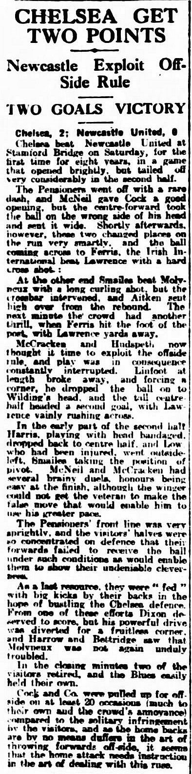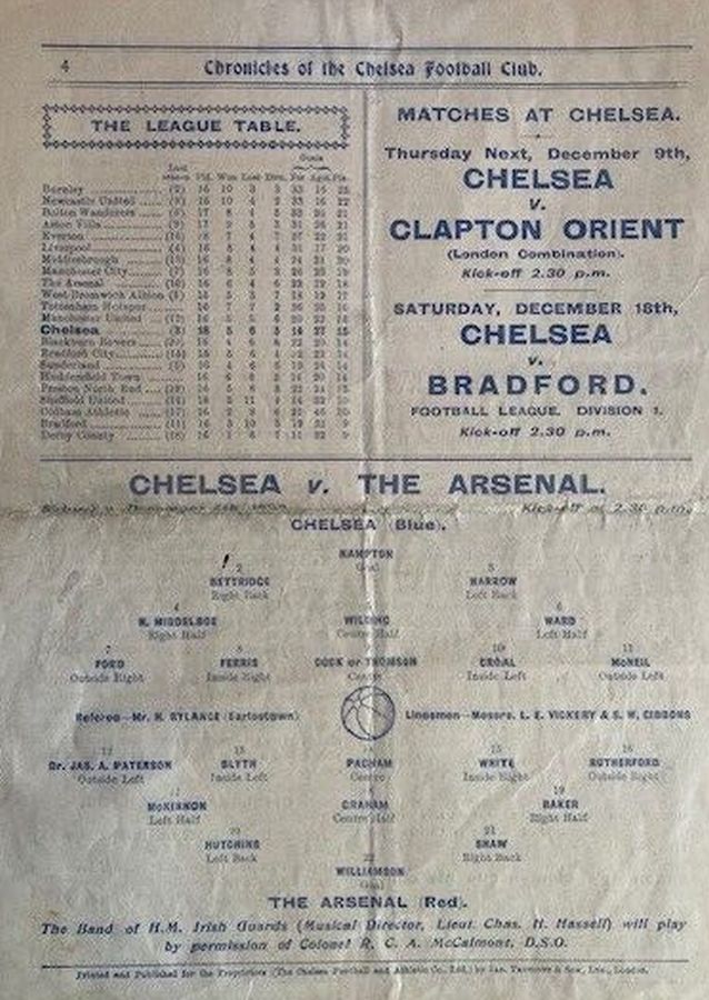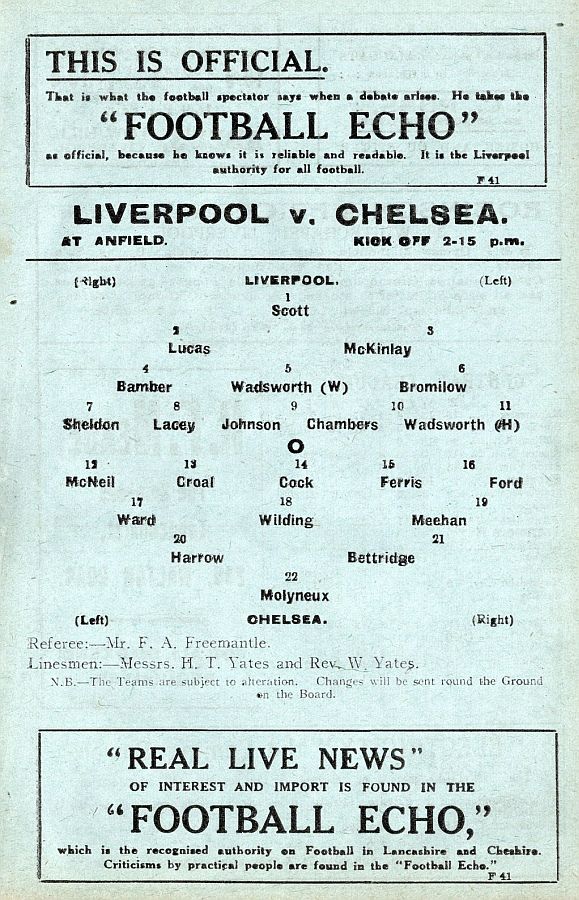 Sam Hardy, Tommy Smart, Tommy Weston, Frank Moss, Frank Barson, John Hampson, Dicky York, Ian Dickson, Andrew Young, Billy Walker, Lew Price |