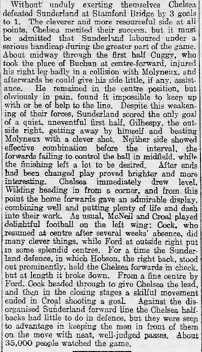 Tim Williamson, Jock Marshall, Walter Holmes, Stewart Davidson, Bill Ellerington, Peter Donaghy, Thomas Brown, Robert Pender, Billy Birrell, Frank Dowson, Tommy Urwin |