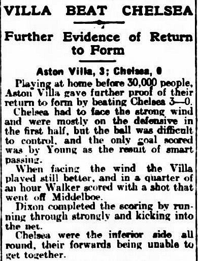 Aston Villa (1) 3 Chelsea (0) 0