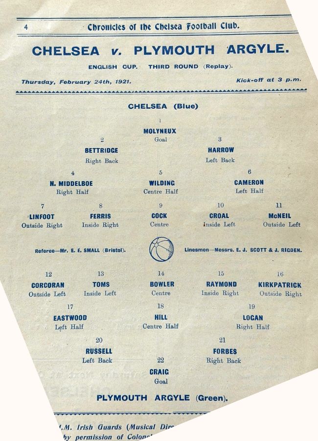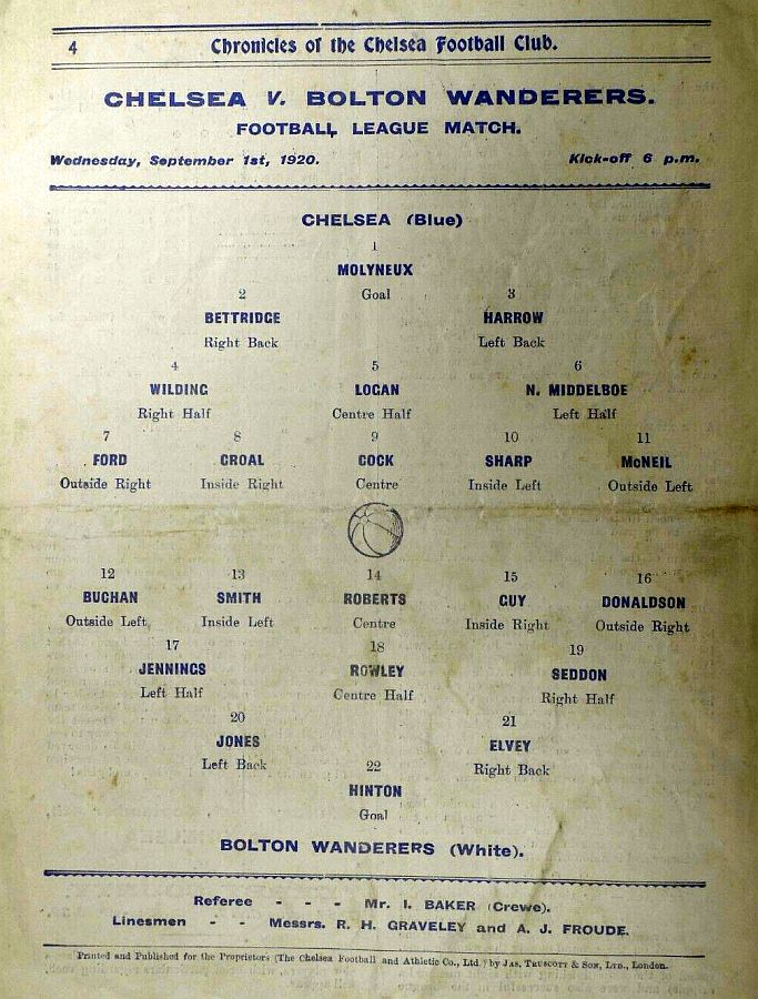 1 Colin Hampton, 2 Wally Bettridge, 3 Jack Harrow, 4 Nils Middelboe, 5 Tom Logan, 6 Harold Halse, 7 Harry Ford, 8 George Dale, 9 Jack Cock, 10 Jimmy Croal, 11 Robert McNeil |