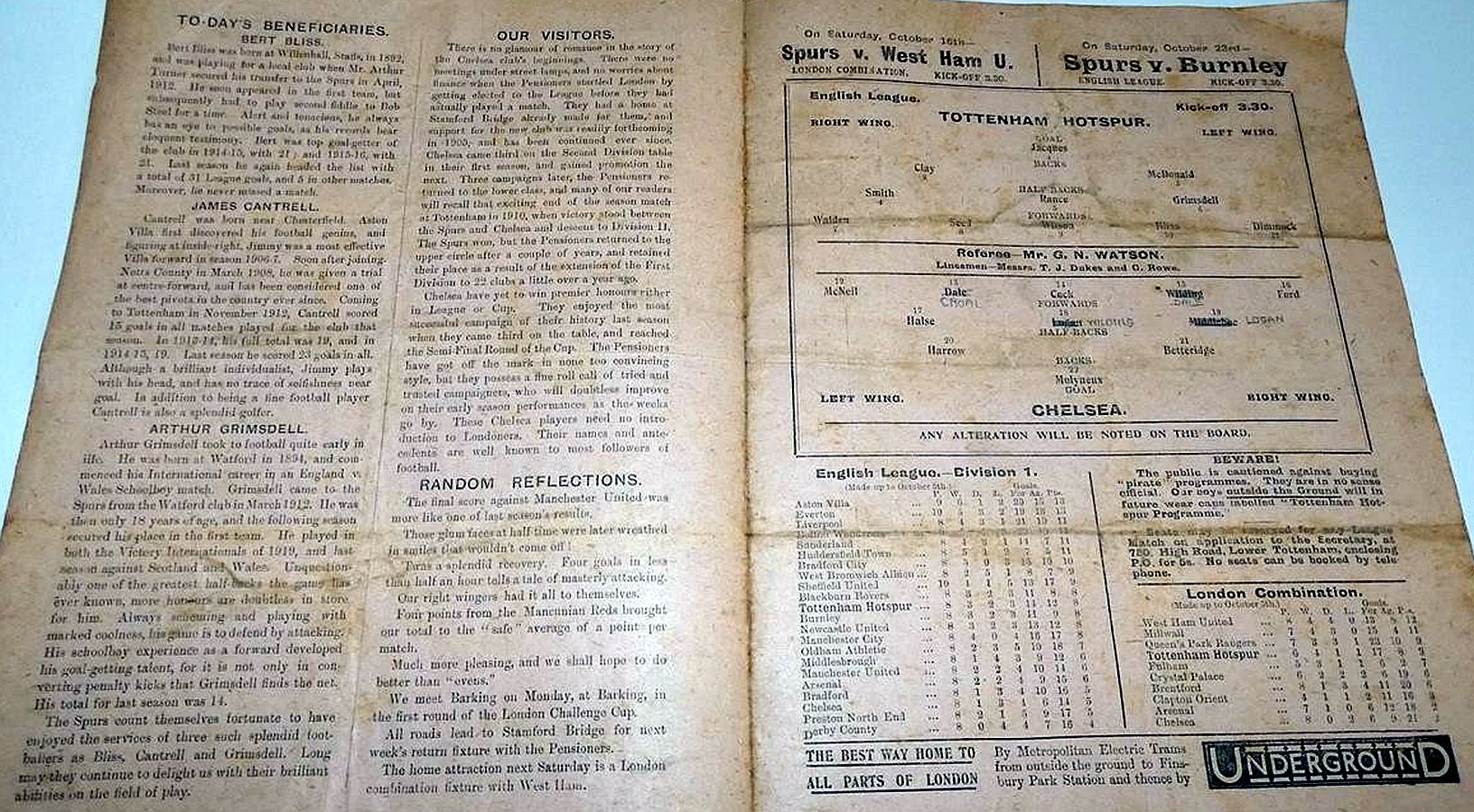 Cyril Spiers, Tommy Smart, Tommy Weston, Andy Ducat, Frank Barson, Frank Moss, Dicky York, Ian Dickson, Andrew Young, Billy Walker, Lew Price |