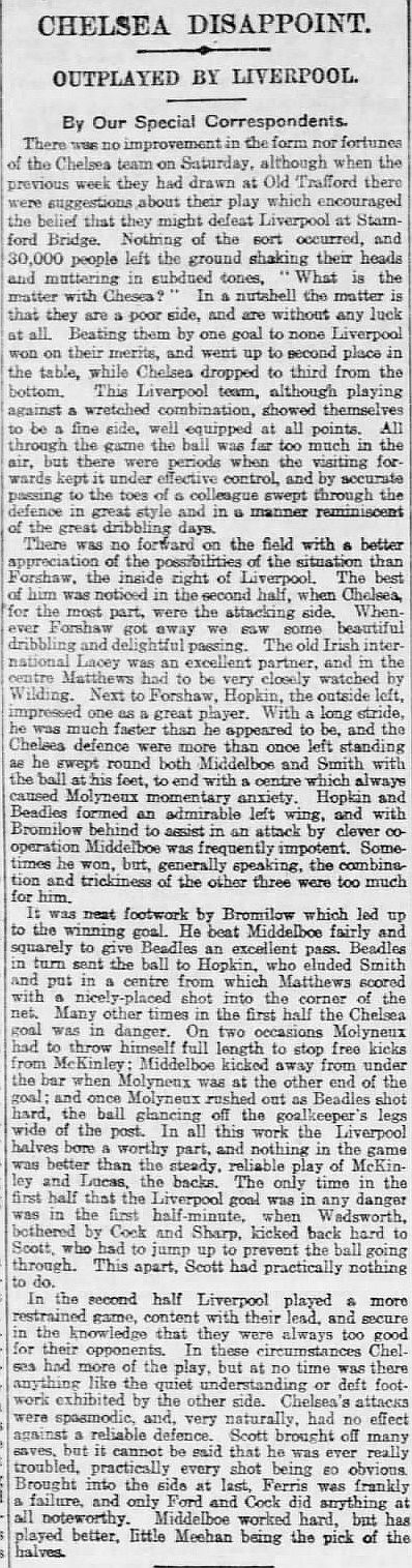 Elisha Scott, Tommy Lucas, Donald McKinlay, Frank Checkland, Walter Wadsworth, Tom Bromilow, Billy Lacey, Dick Forshaw, Billy Matthews, Harry Beadles, Fred Hopkin |