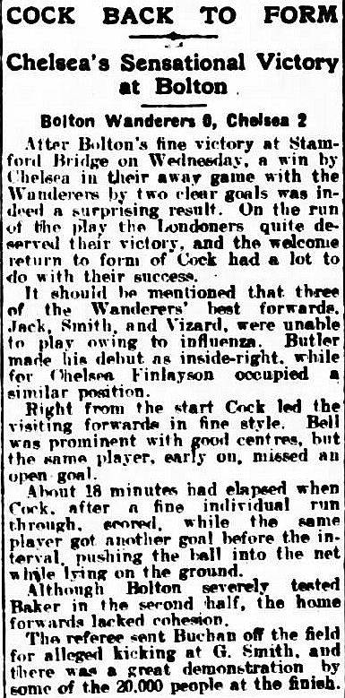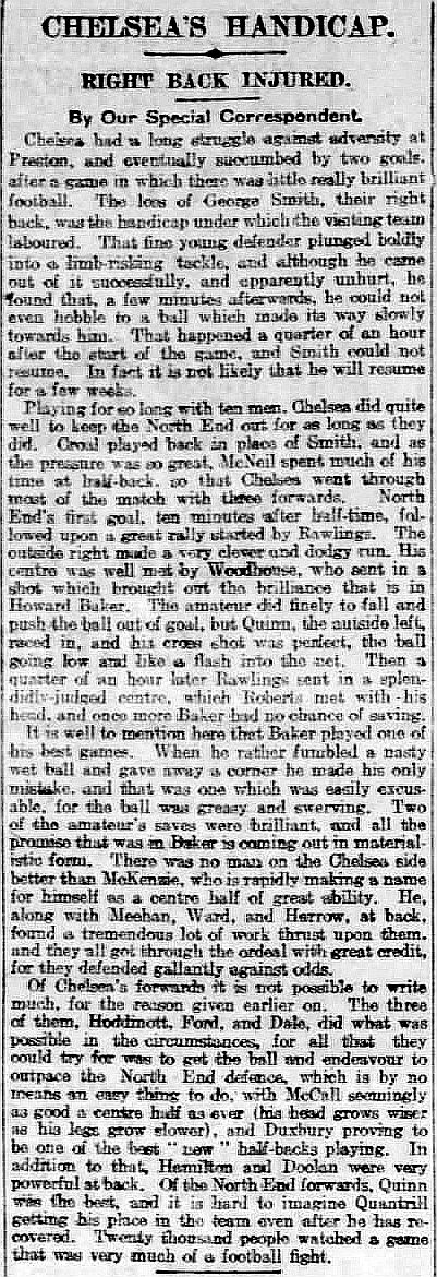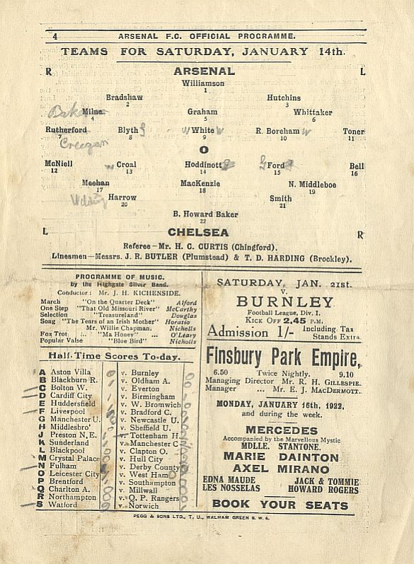 Thomas Blair, Sam Cookson, Eli Fletcher, Sammy Sharp, Max Woosnam, Mickey Hamill, Alf Ford, Tommy Browell, Tommy Johnson, Horace Barnes, Billy Murphy |