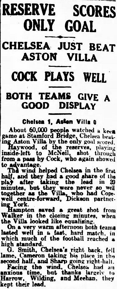 Chelsea (1) 1 Aston Villa (0) 0