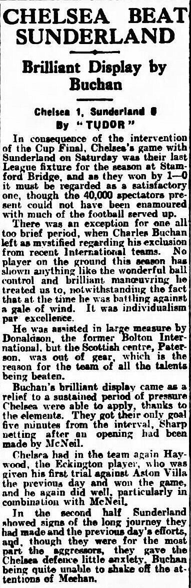 Bill Harper, Warney Cresswell, Ernie England, Charlie Parker, Jack Poole, Jack Mitton, Alex Donaldson, Charlie Buchan, Jock Paterson, Arthur Hawes, Billy Ellis |