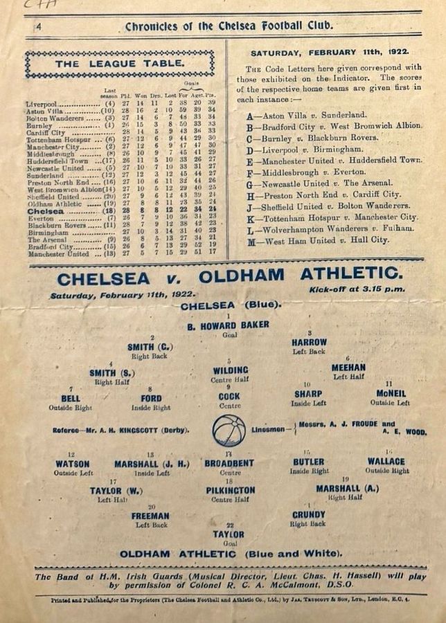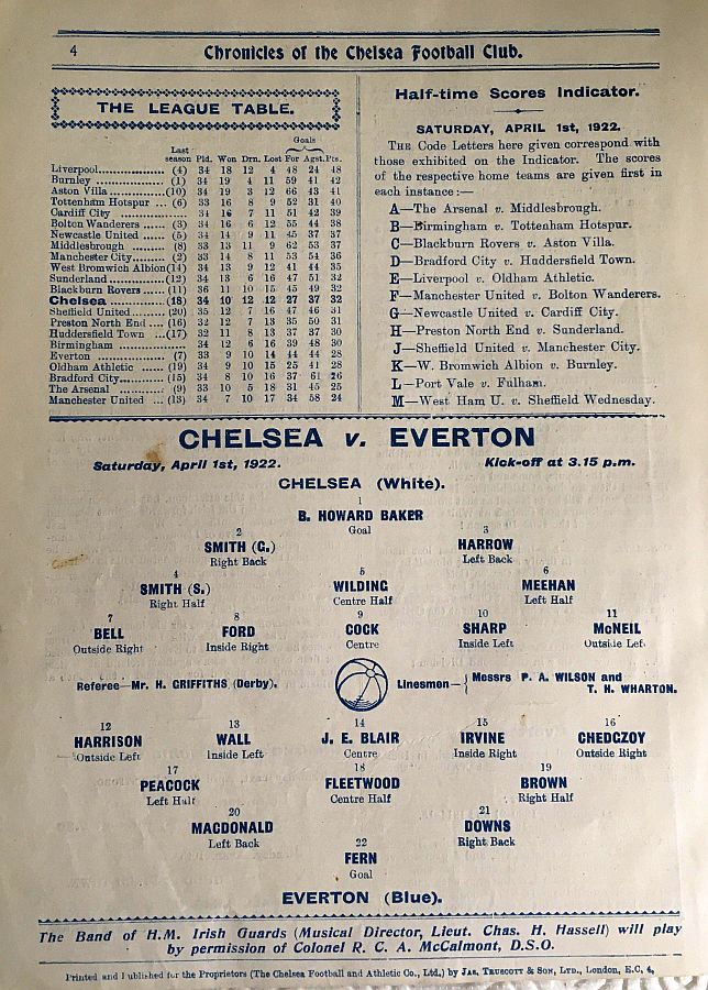 Tom Fern, Dickie Downs, Louis Weller, William Brown, Tommy Fleetwood, Joe Peacock, Sam Chedgzoy, Bobby Irvine, John Blair, Alec Wall, George Harrison |