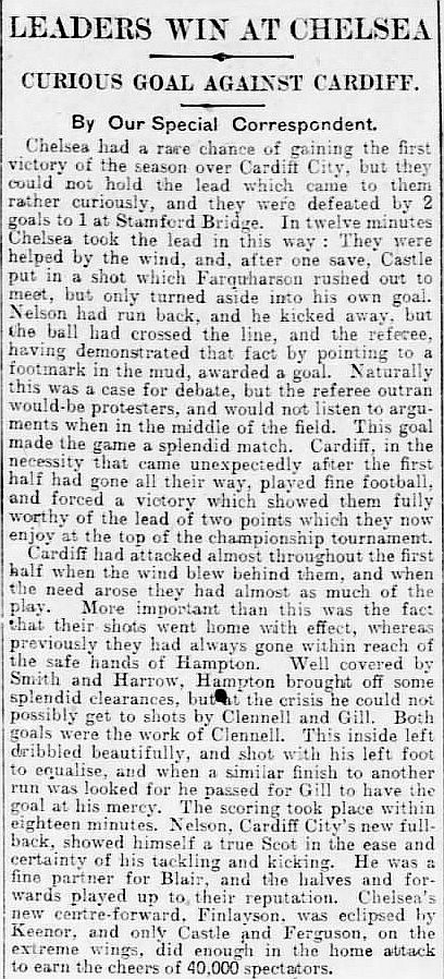 Tom Farquharson, Jimmy Nelson, Jimmy Blair, Herbie Evans, Fred Keenor, Billy Hardy, Billy Grimshaw, Jimmy Gill, Len Davies, Joe Clennell, Jack Evans |