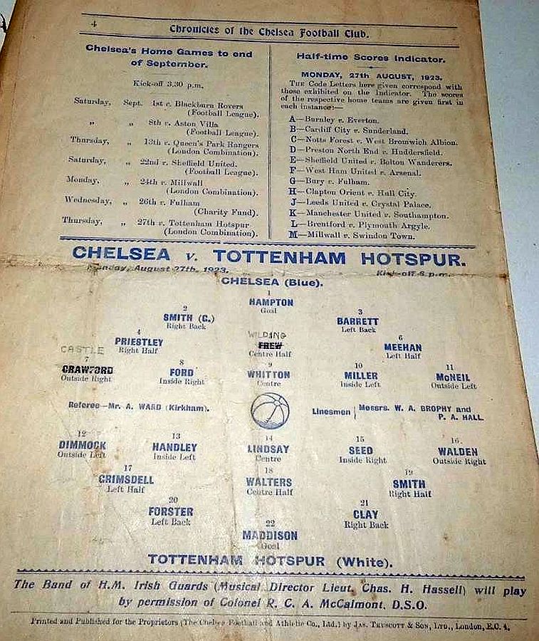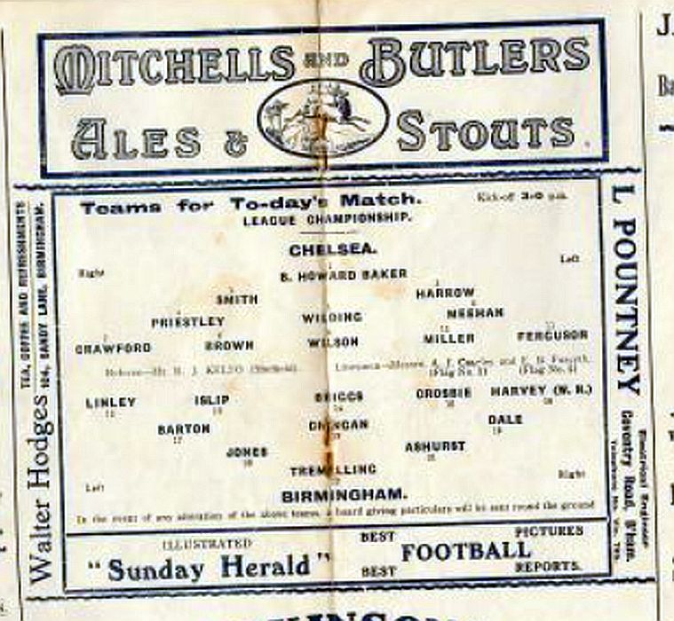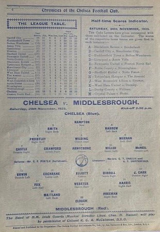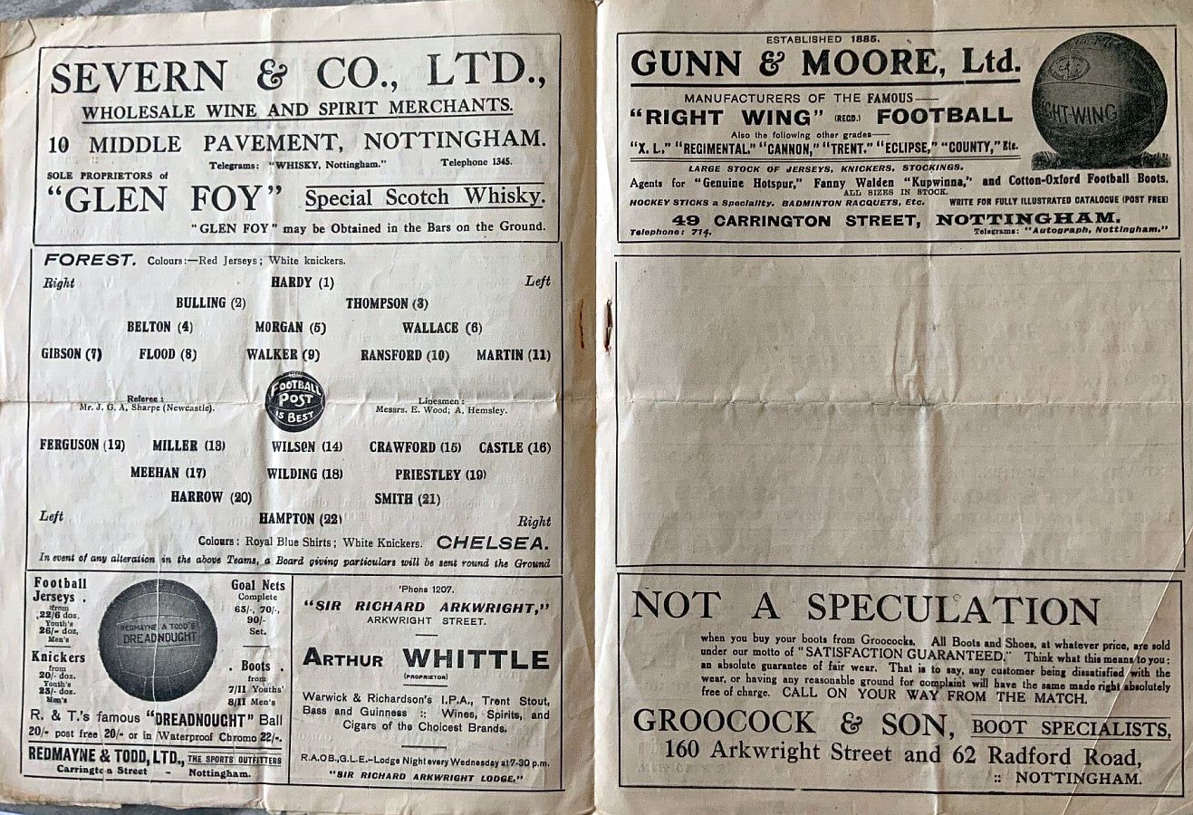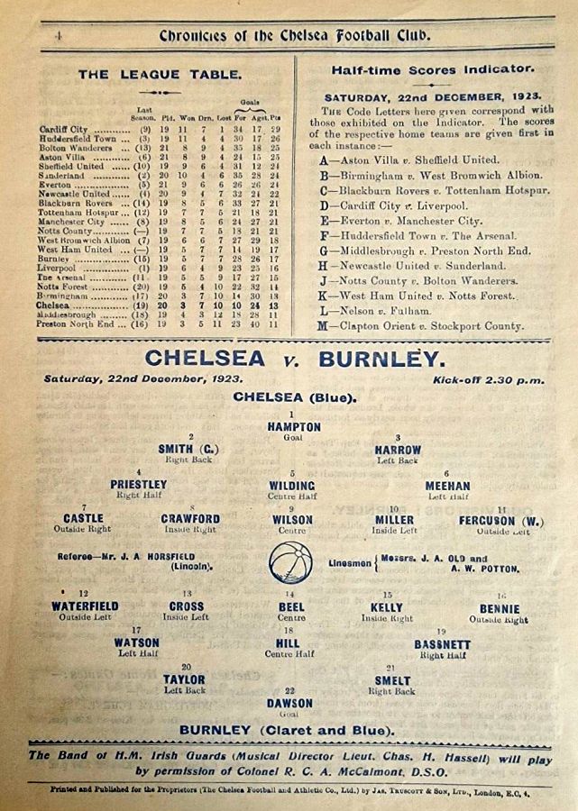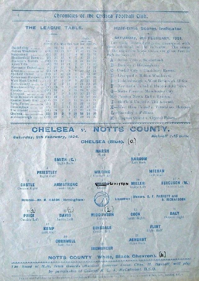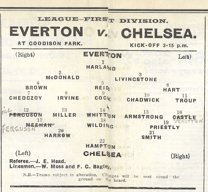 1 Colin Hampton, 2 George Smith, 3 Jack Harrow, 4 John Priestley, 5 Harry Wilding, 6 Tommy Meehan, 7 Sid Castle, 8 Albert Thain, 9 William Finlayson, 10 Willie Ferguson, 11 Harold Miller |