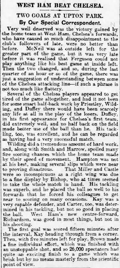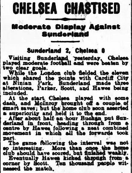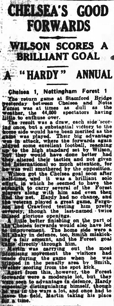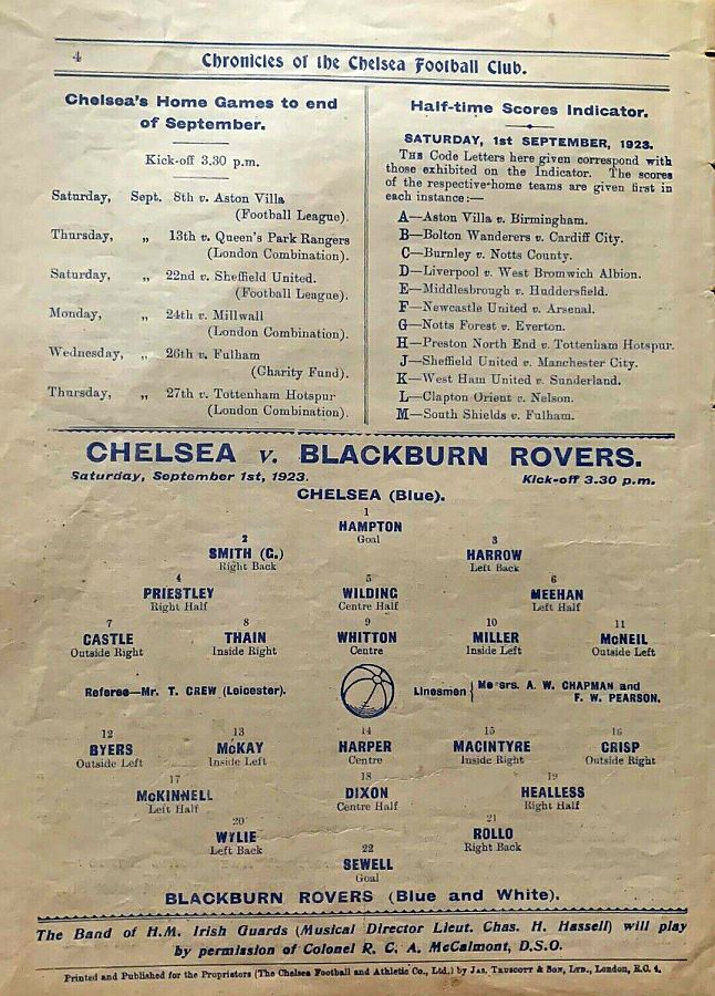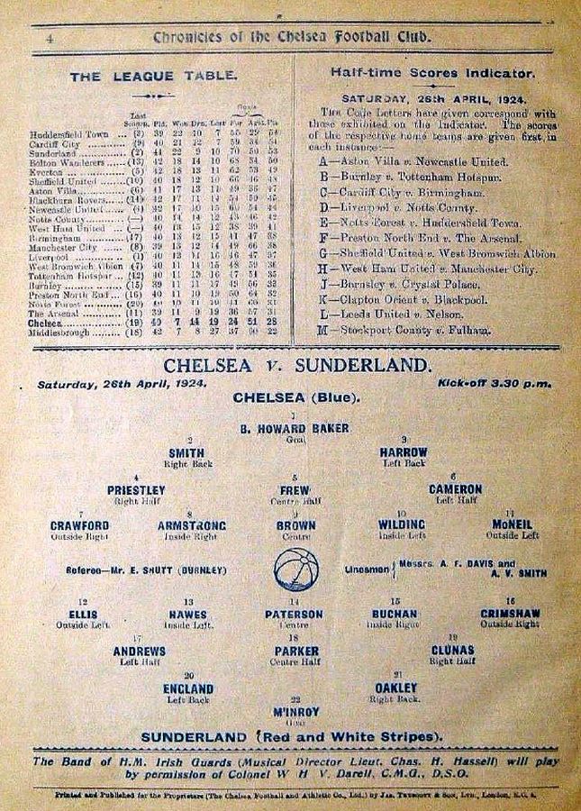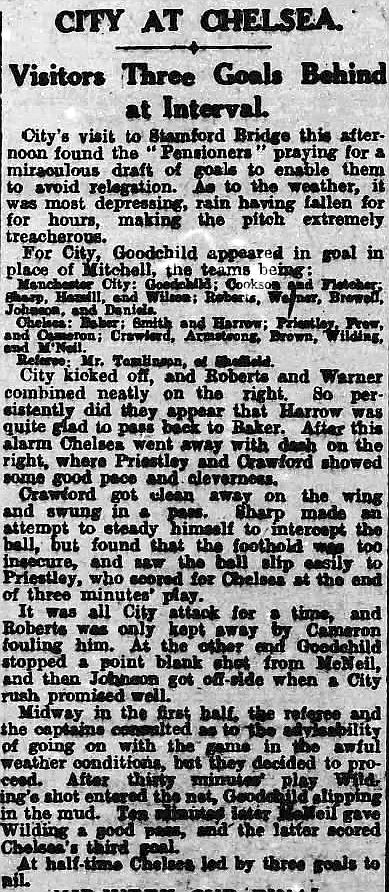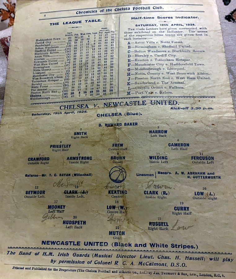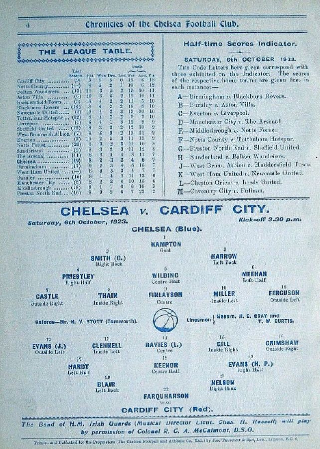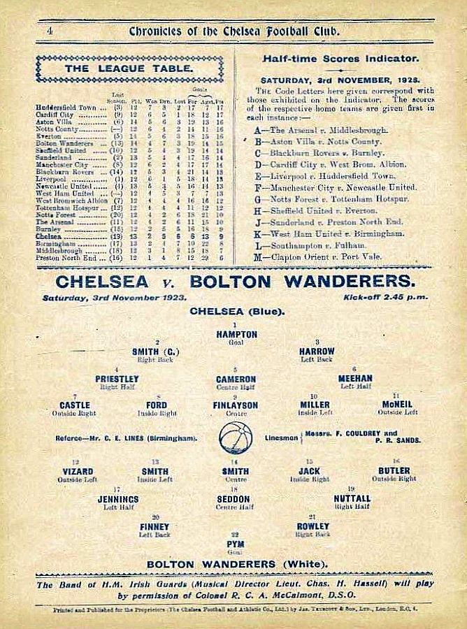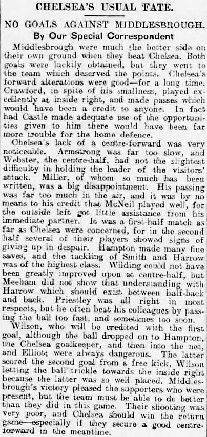 1 Colin Hampton, 2 George Smith, 3 Jack Harrow, 4 John Priestley, 5 Harry Wilding, 6 Tommy Meehan, 7 Sid Castle, 8 Albert Thain, 9 William Finlayson, 10 Willie Ferguson, 11 Harold Miller |