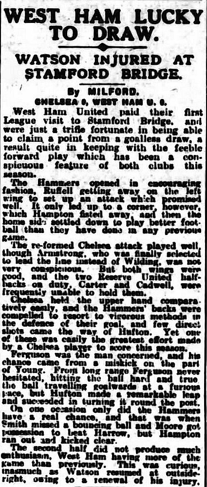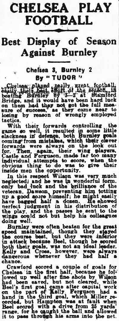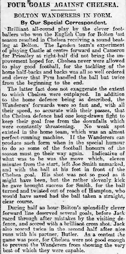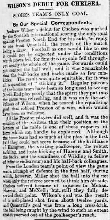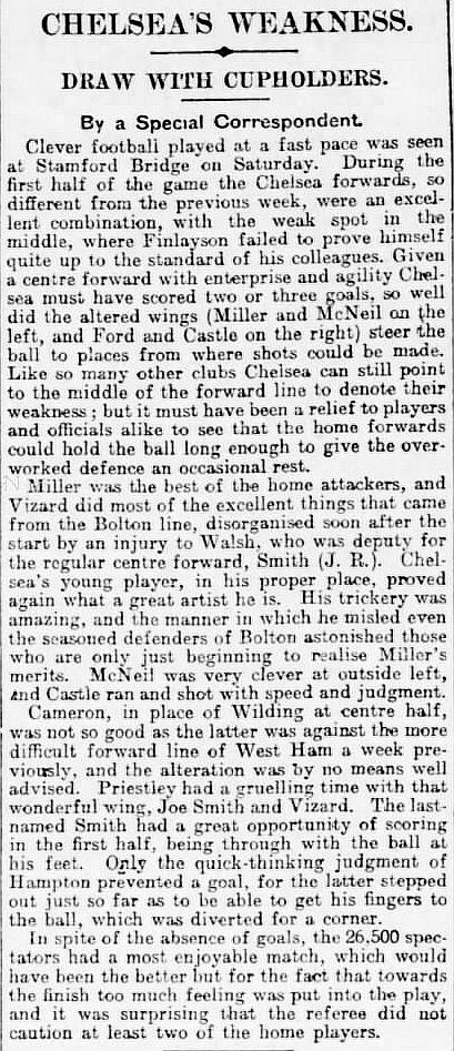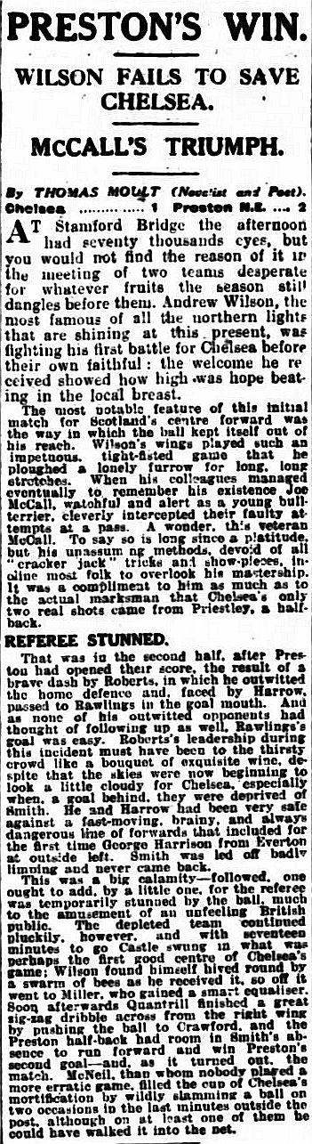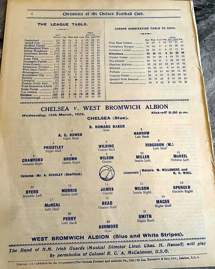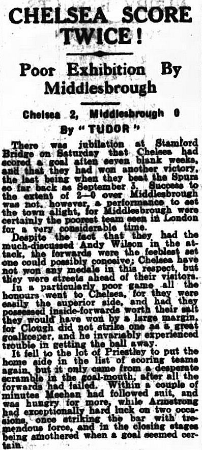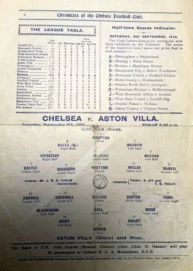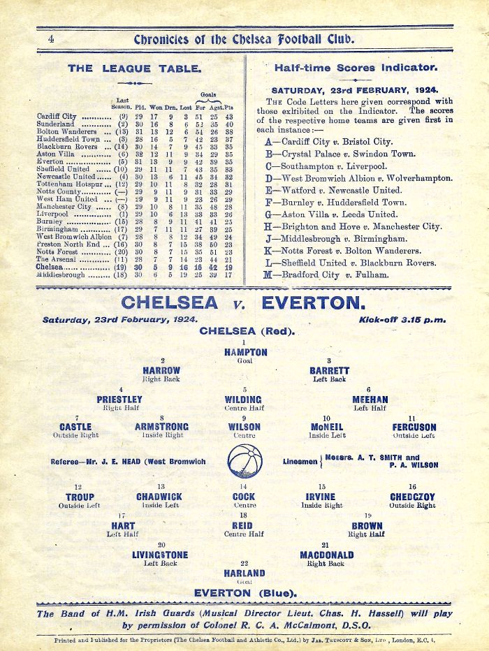 1 Colin Hampton, 2 George Smith, 3 Jack Harrow, 4 John Priestley, 5 Harry Wilding, 6 Tommy Meehan, 7 Sid Castle, 8 Albert Thain, 9 William Finlayson, 10 Willie Ferguson, 11 Harold Miller |
