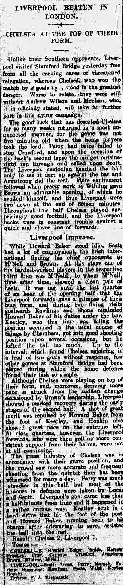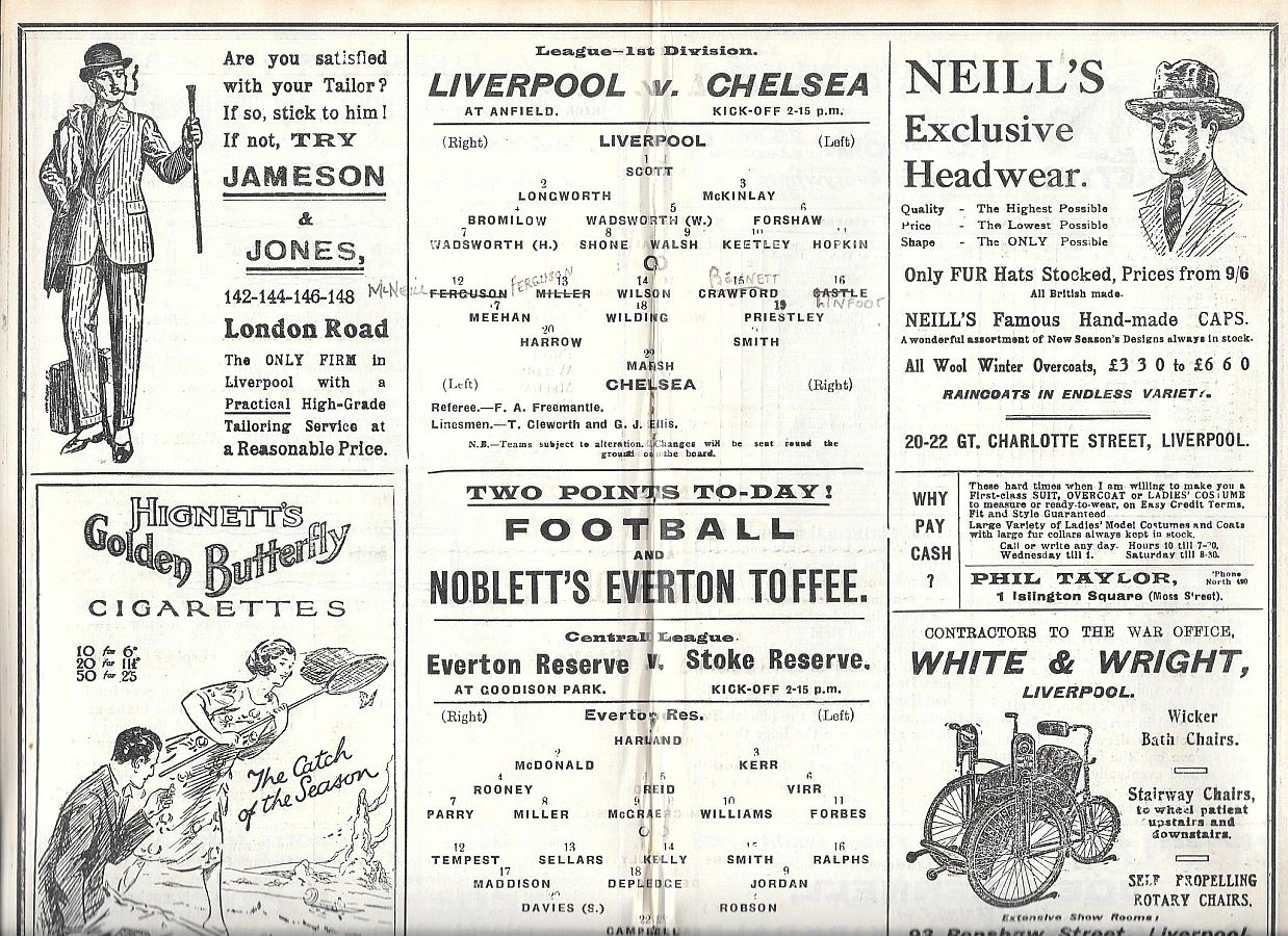 Elisha Scott, Tommy Lucas, Ted Parry, Jock McNab, Archie Rawlings, Tom Bromilow, Joe Keetley, Dick Forshaw, Jimmy Walsh, Danny Shone, Fred Hopkin |
