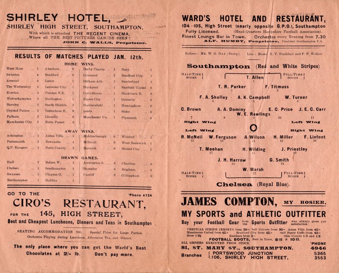 Cyril Spiers, Tommy Smart, Percy Jones, Jock Johnstone, Tommy Ball, Frank Moss, Dicky York, Billy Kirton, Billy Walker, Len Capewell, Arthur Dorrell |