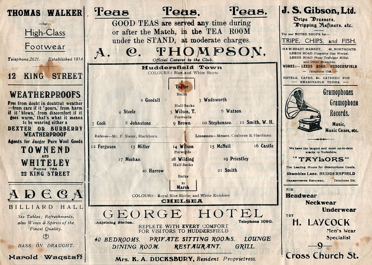 Harold Gough, Bill Cook, Ernest Milton, Harry Pantling, Jimmy Waugh, George Green, David Mercer, Tommy Sampy, Harry Johnson, Bertie Menlove, Fred Tunstall |